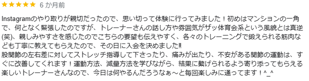 グーグルの口コミ評価では5.0の評価をいただいております。