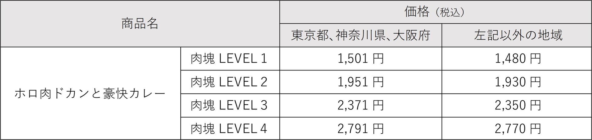 再販にあたり、LEVEL1~3までとしていた「肉塊LEVEL」に、新たにLEVEL4を追加いたしました。肉塊の量はLEVEL1の約2.5倍。前回、「ライス量を増やすと肉塊が足りなかった」というお客様は、LEVEL4のオーダーもご検討ください。