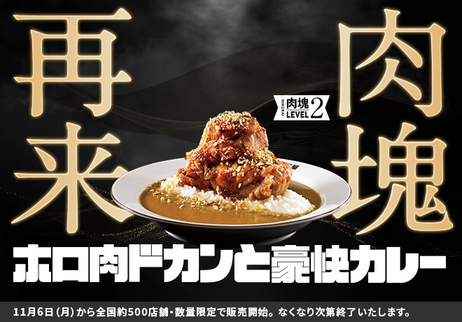あの肉塊がレベルアップして帰ってくる ココイチ、11月6日より「ホロ肉ドカンと豪快カレー」の再販をスタート!販売店舗は全国500店舗に拡大