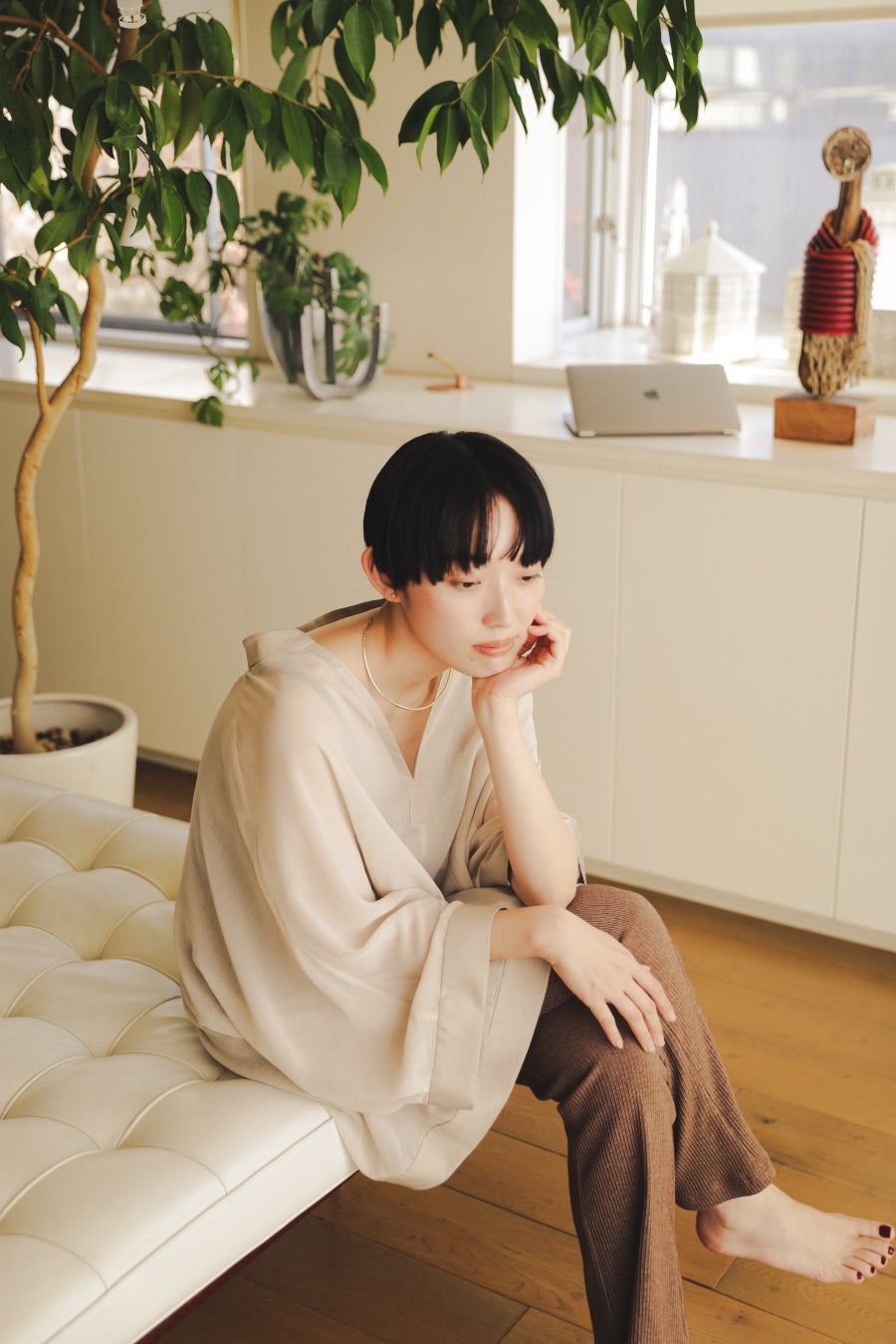 ブランドディレクターの江澤亜沙子は自身が子育てをする中でライフスタイルが変わっても女性が凛として過ごせる日常を服で提案したいという想いからBRODO di PESCEを立ち上げました。