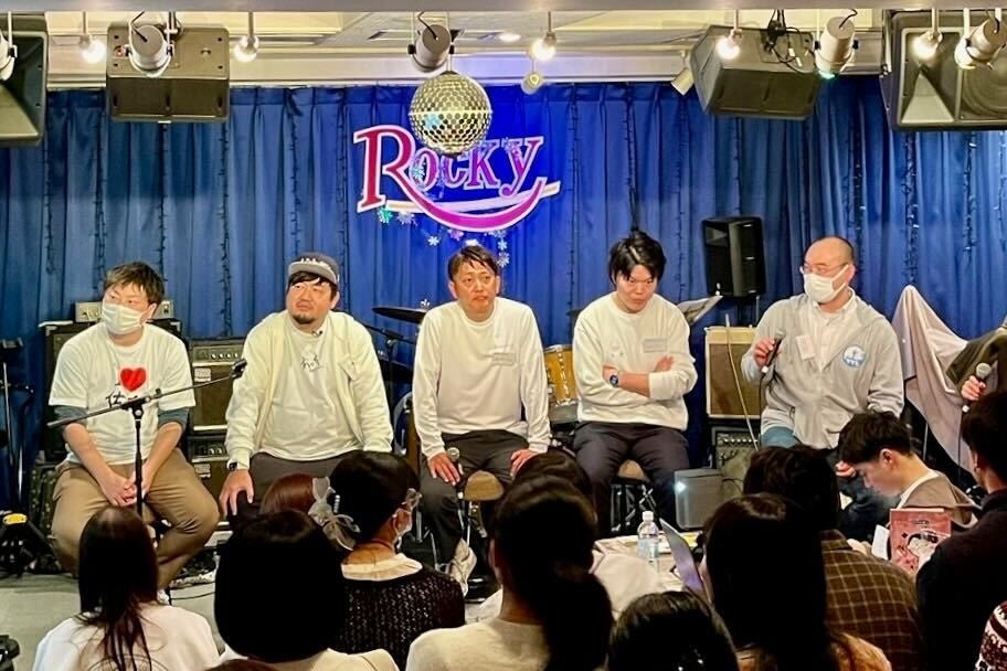 マワレ参画企業を中心に、マワレに興味がある薬学生、薬剤師、企業を中心に集まり、成果報告会を開催しています。実際に出向した社員の発表や企業同士の交流、参加者によるバンド演奏などが行われています。