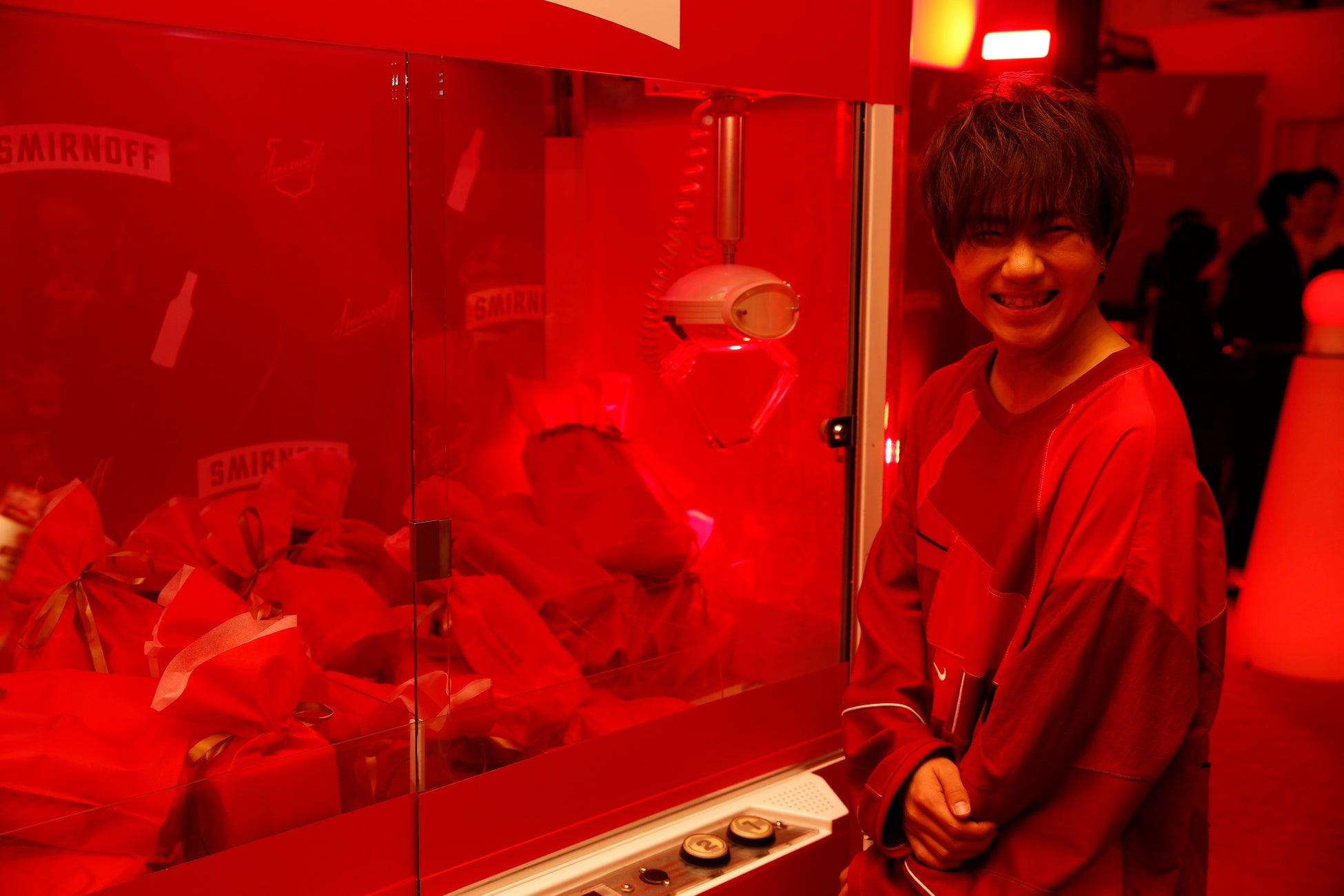 3月31日(金)にプロジェクト第1弾となるローンチイベント「RED BOX」を開催しました。本イベントでは「Hz - Shibuya(ヘルツシブヤ)」を真っ赤に染め上げ、赤いドレスコードのインフルエンサーの方々を約60名ご招待しました。”スミノフレッド”で特別演出した空間には、フォトブースやクレーンゲーム、DJブースなどを用意し、「スミノフアイス™」を飲みながら、プレイフルな夜を楽しんでいただきました。