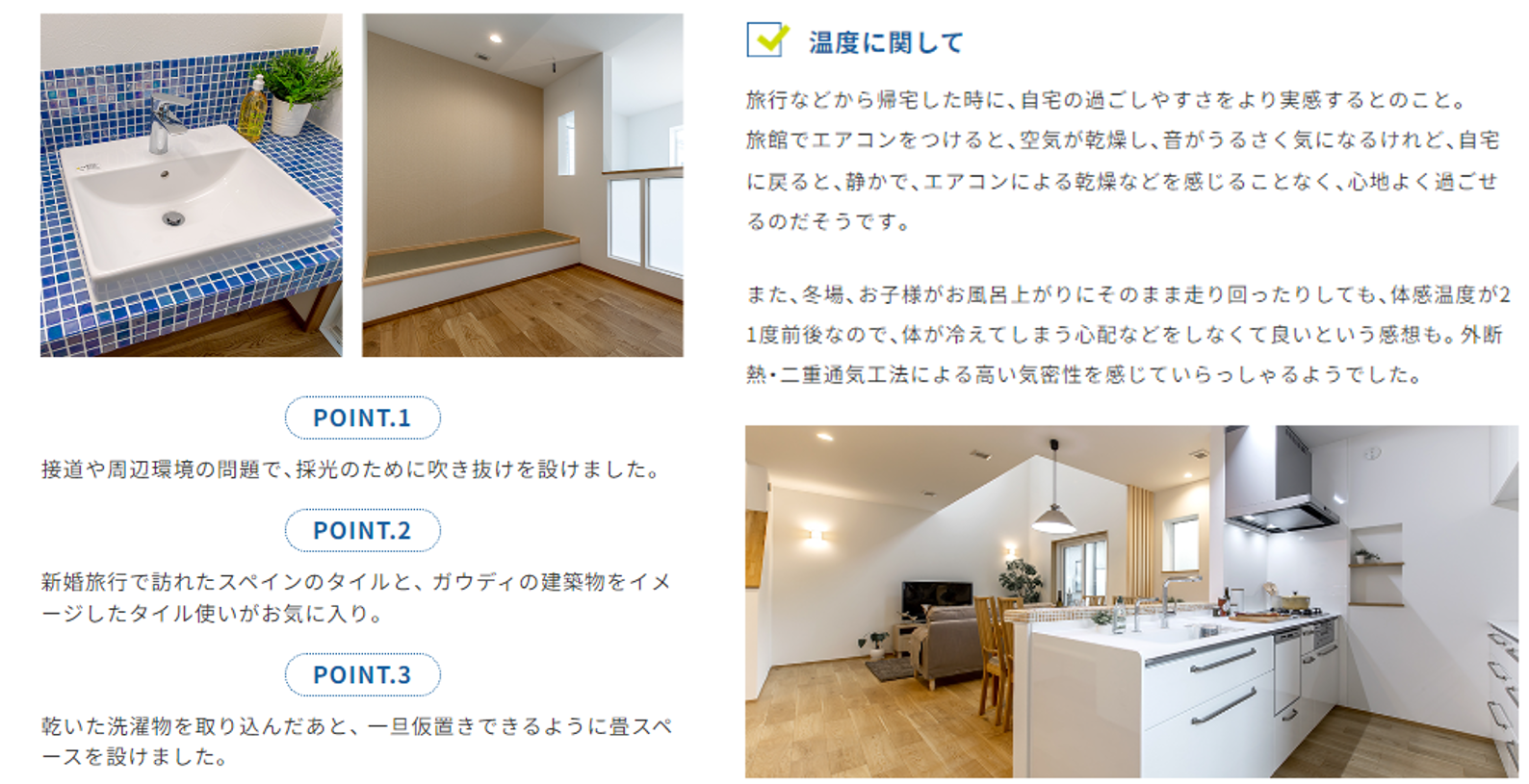 実際に建てられたオーナー様のお家づくりのこだわりポイントはもちろん、住んでみて実感したことや実際の間取りもご紹介しています。省エネ性だけでなく、快適性に関する部分もご紹介しています。