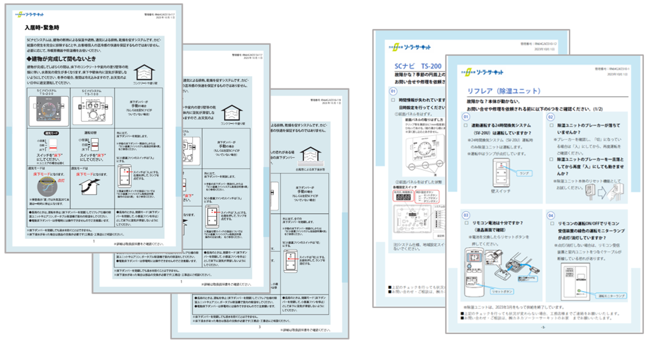 台風や集中豪雨など悪天候におけるソーラーサーキットの機器の設定の仕方や、機器の不具合時の対処法に関してアドバイスする資料を閲覧できます。緊急時の対応を主として、オーナー様ご自身で対応できる内容を中心に解説した資料となっています。