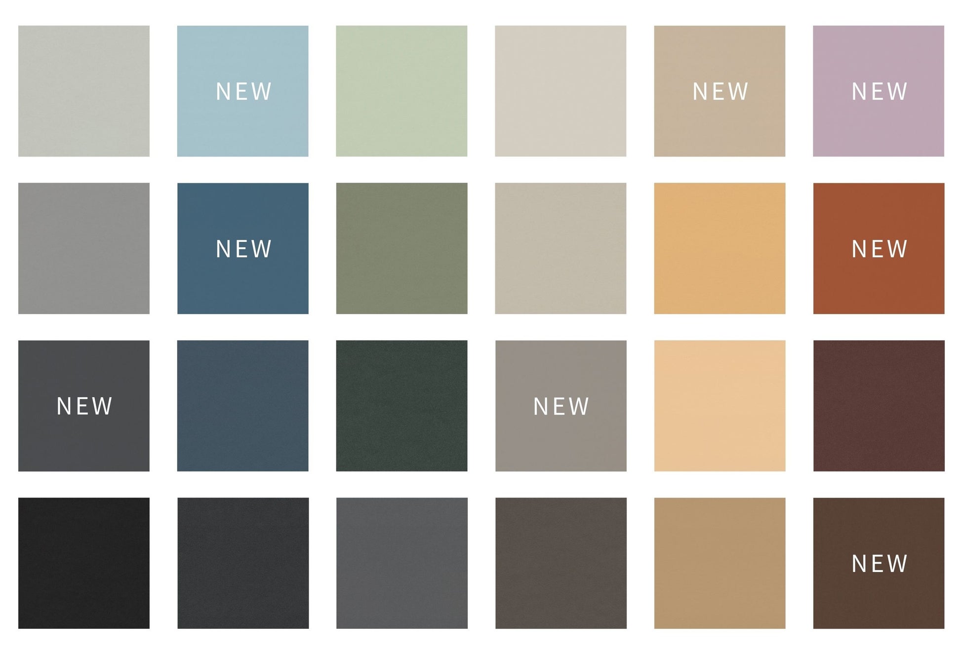 全24色中、8色が廃番、そして8色新たに追加されます。今回発表されたカラーコレクションは、厳選されたニュートラルで現代的な色合いにアップデート。アースカラーを中心とした絶妙なニュアンスの色味が追加され、よりトレンドや空間デザインの多様化に対応するラインナップへと生まれ変わりました。木材はもちろん、石、テラゾー、真鍮など、多彩なマテリアルと調和します。