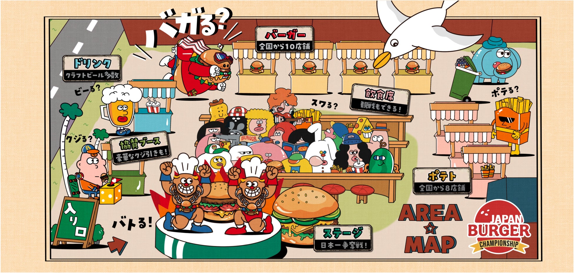 会場では、競技を観戦するだけでなく、出場店舗のハンバーガーやフライドポテトを食べることができるほか、コラボグッズや人気アパレルなどの物販やドリンクも販売します。