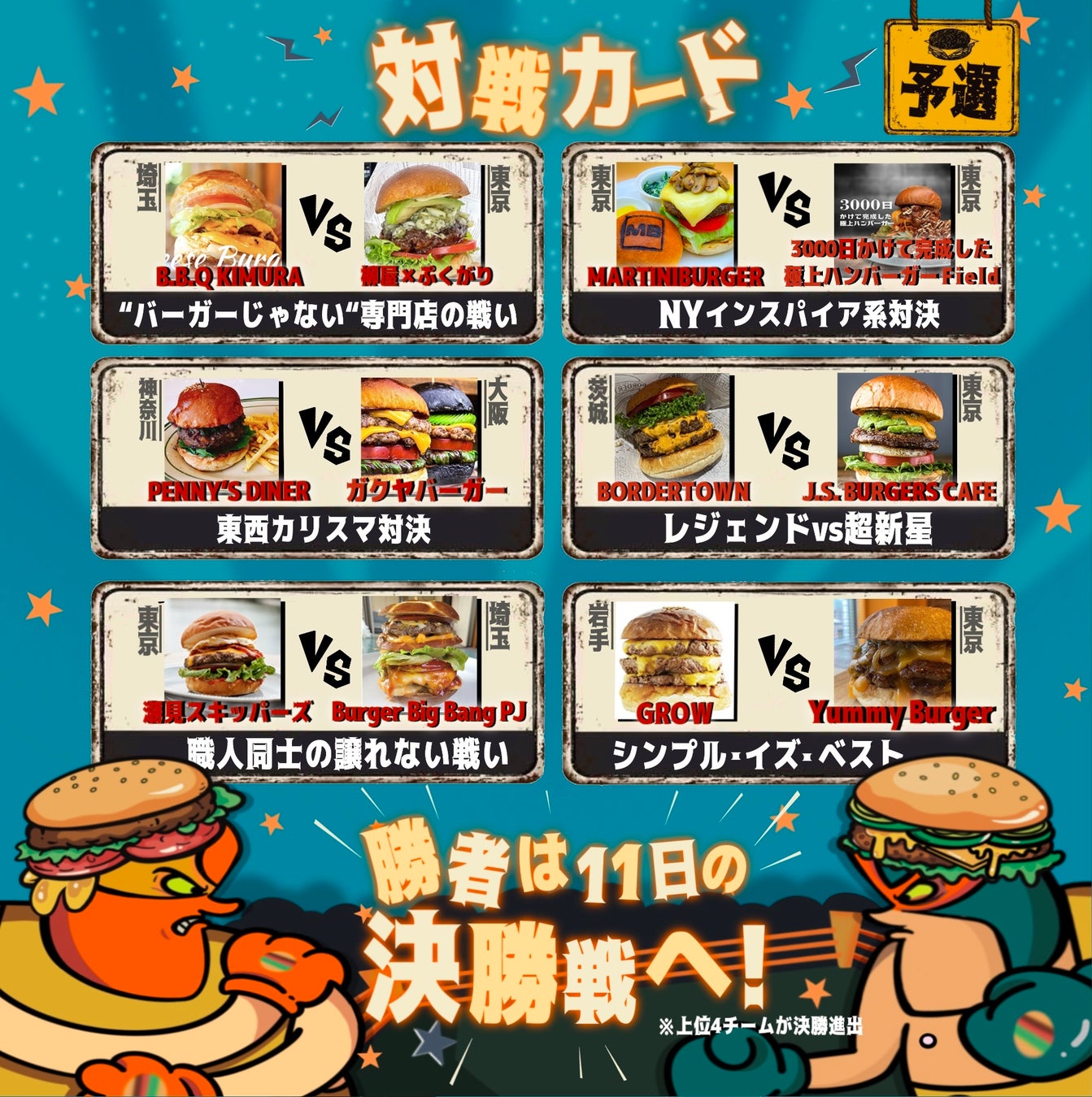 「Japan Burger Championship 2023」予選2日目の対戦カード