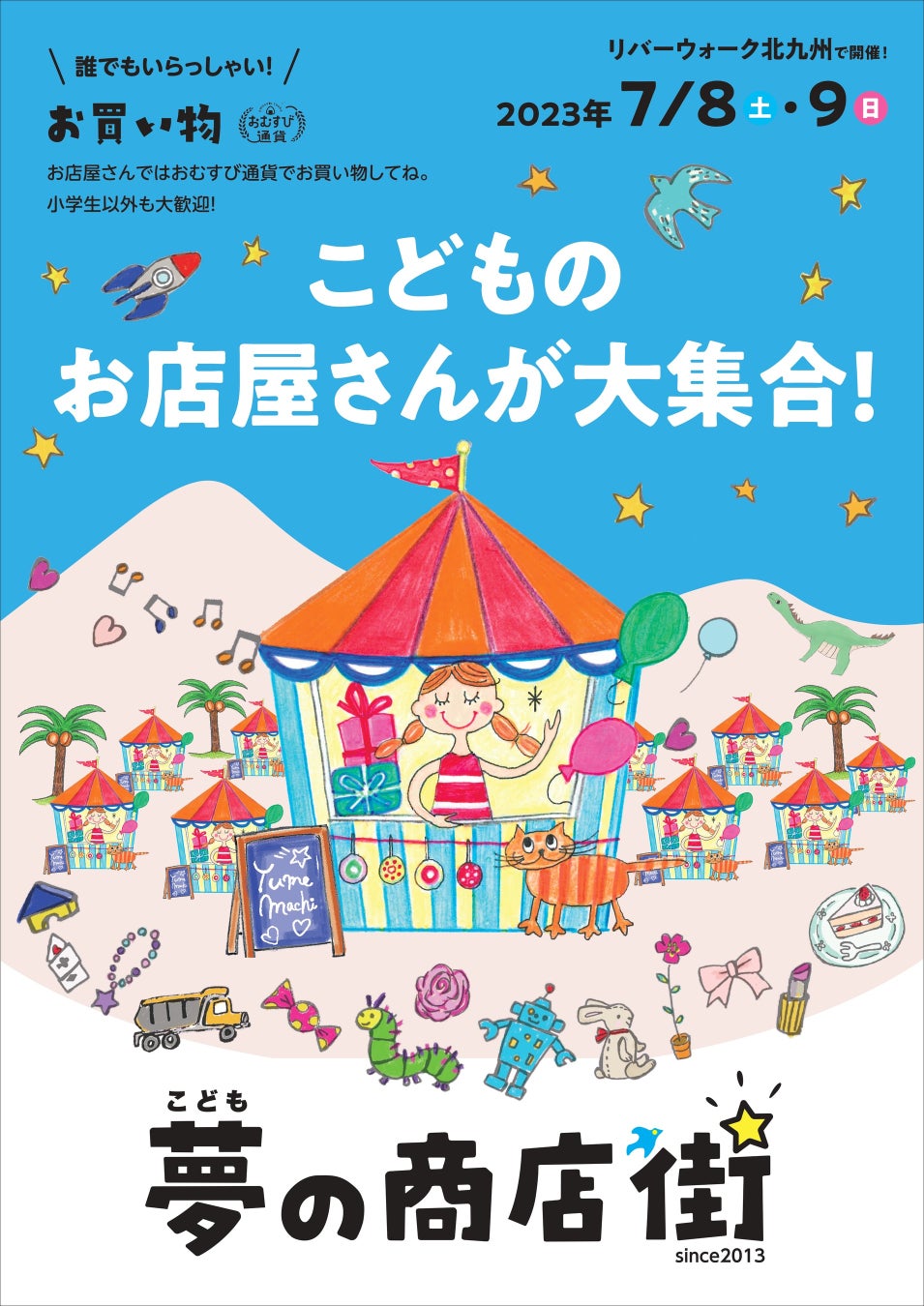 学生団体であるこども夢の商店街実行委員会は、『リバーウォーク北九州』を会場として2023年7月8日(土)-9日(日)にこども夢の商店街を開催します。こども夢の商店街は、17のSDGsのうちの6つを目標として行動する地域プロジェクトです。こども夢の商店街では、小学生が1日起業したり(お店屋さん)、あらかじめ設けられた職場(オシゴト)で働くことを通じておむすび通貨を稼ぎ、起業と就職と消費活動を体験します。おむすび通貨は、北九州市内の特別栽培米に交換でき、北九州市内の中小個人事業所で商品券としても利用できます。