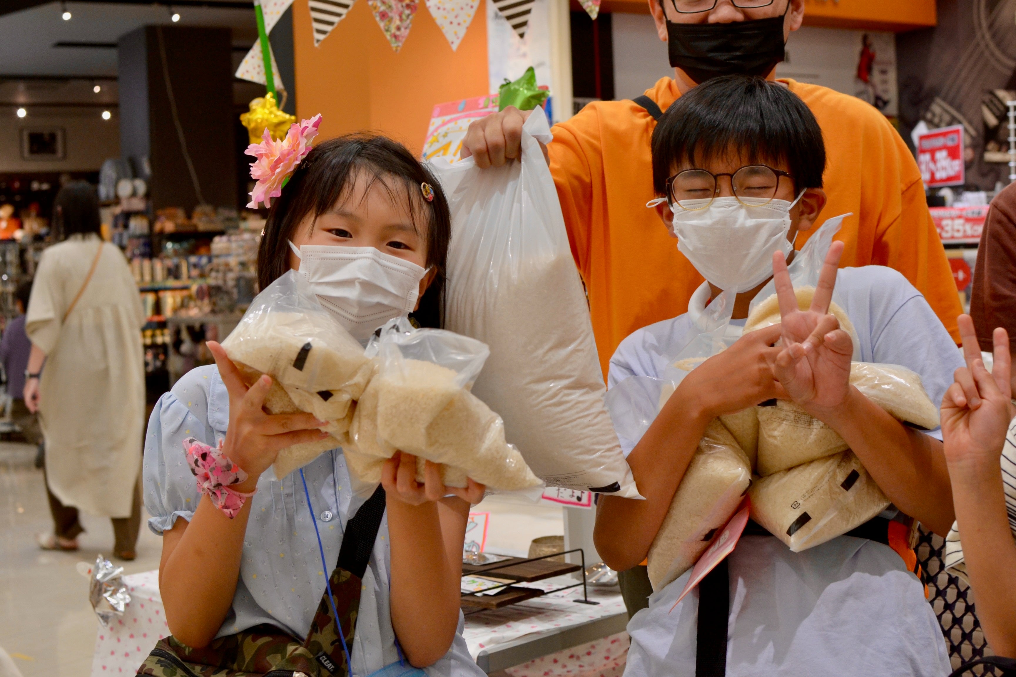 [リバーウォーク北九州]・ 開業20th Anniversary イベント小学生が[リバーウォーク北九州]で起業して米本位制通貨をかせぐ「こども夢の商店街」