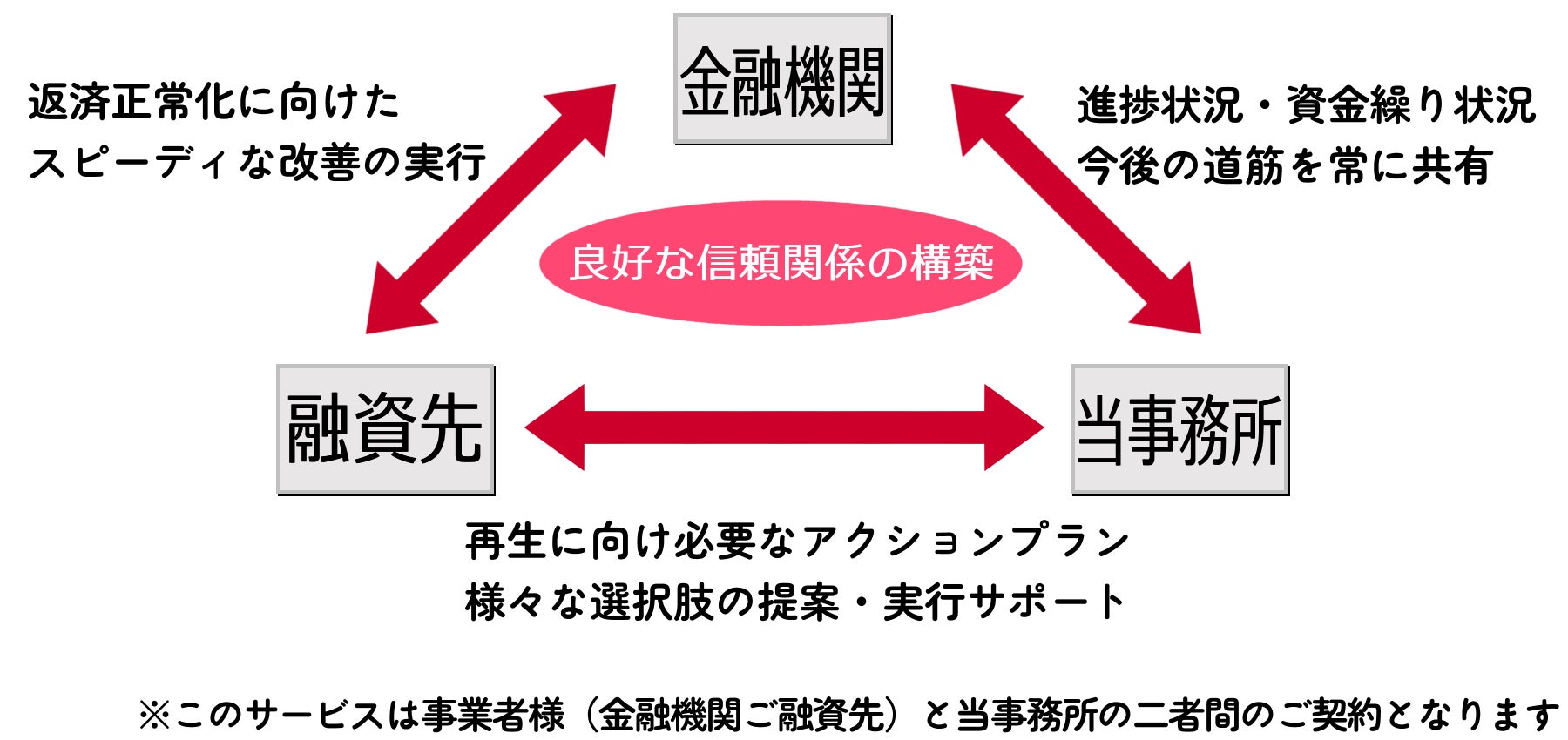 当事務所が行っている業務は、日ごろから融資先との距離を縮め、関係性を良好にしようとされている融資担当の皆様が感じているジレンマを解消できると考えております。