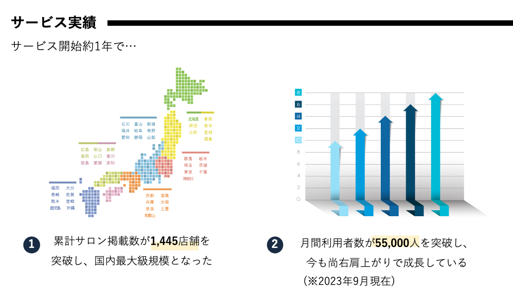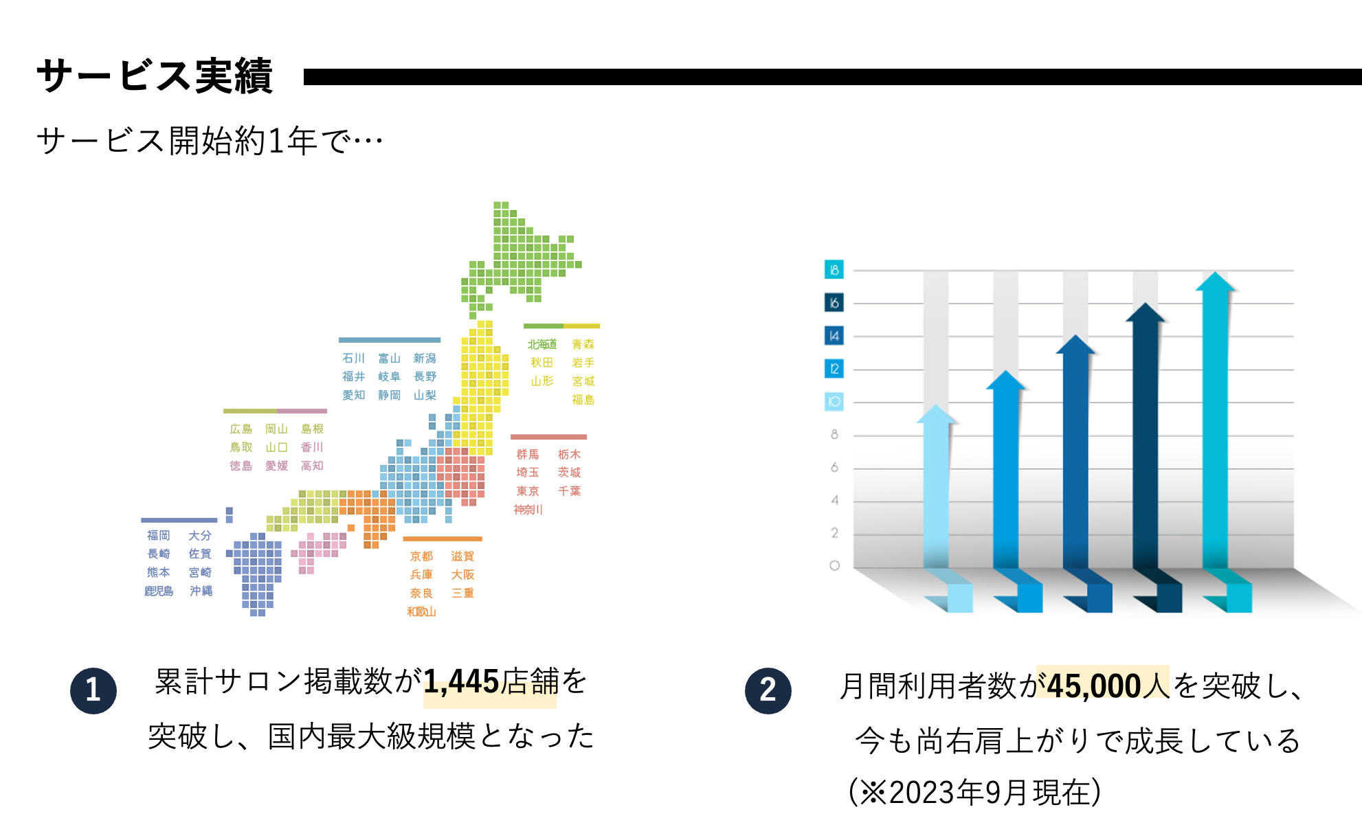そこから約1年間「メンズ眉毛サロン」に特化したコンテンツ制作に愚直に取り組み続け、現在では「メンズ眉毛サロン検索機能」の累計サロン掲載数は国内最大級規模、メディア全体の月間利用者数も毎月45,000人以上を超える程にまで成長しました。