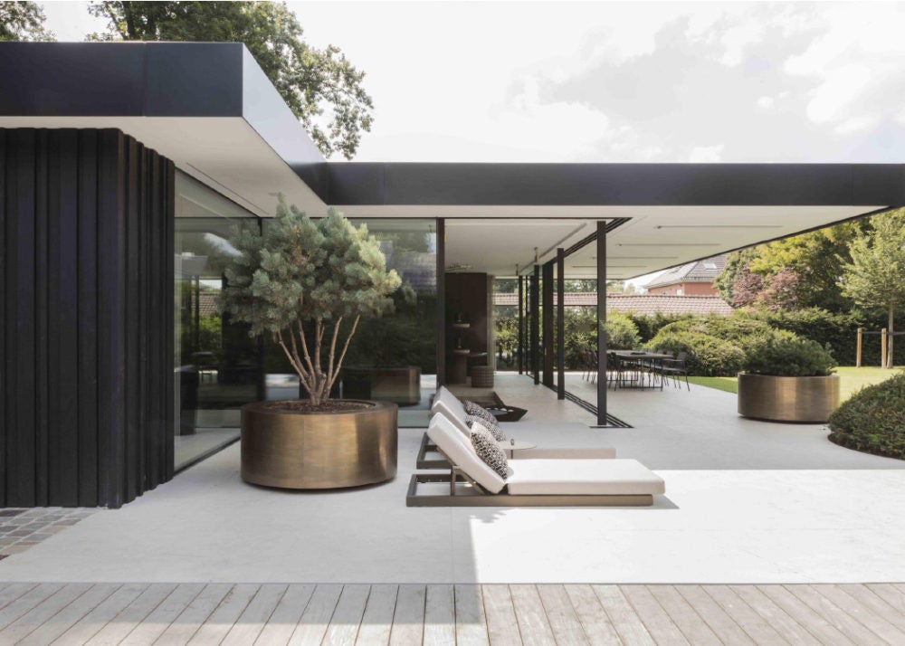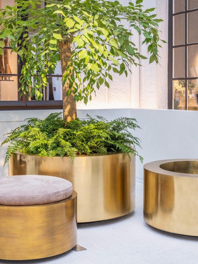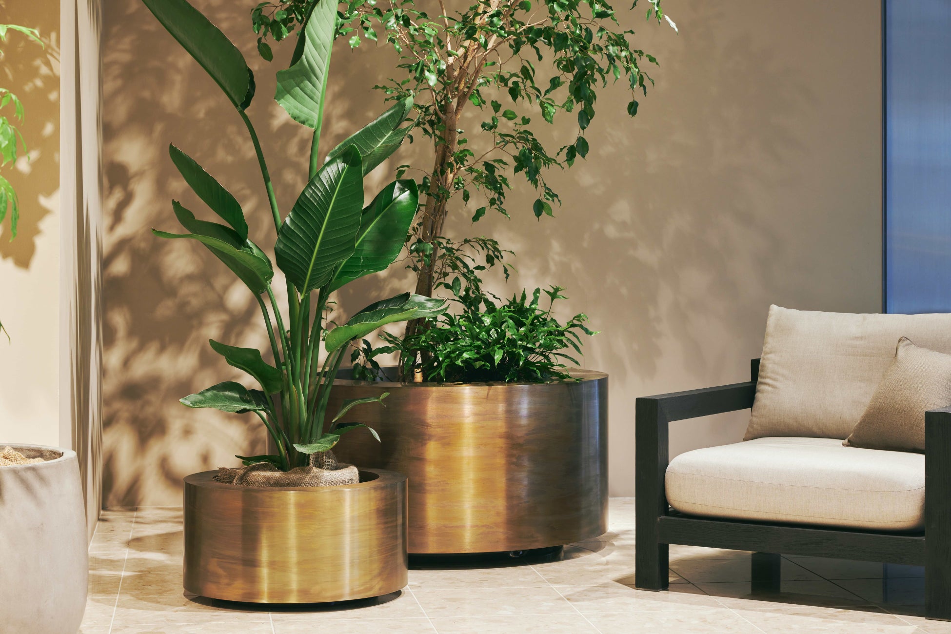 個⼈邸からホテルのパブリックスペースまでハイエンドの空間に更なる深みを与えるベルギーの真鍮のプランターブランド。