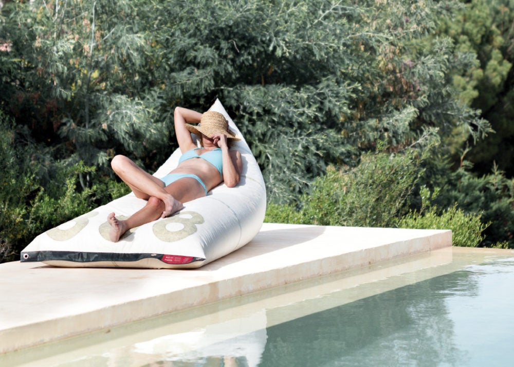 航海を終えたセイルを「水辺に強い屋外家具」にアップサイクル。大きなセイルから切り取り制作されるため同じデザインはふたつと無い、世界でたったひとつのビーンバッグが人気。
