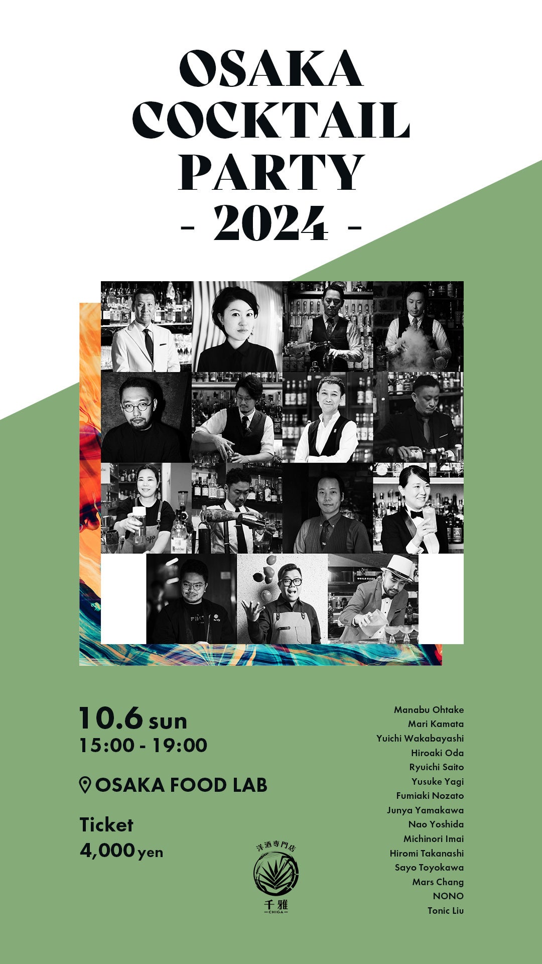 大阪の洋酒酒販店、株式会社千雅は、関西では最大規模のカクテルパーティー「OSAKA COCKTAIL PARTY 2024」を、2024年10月6日(日)にOSAKA FOOD LAB(大阪市・中津)で開催します。