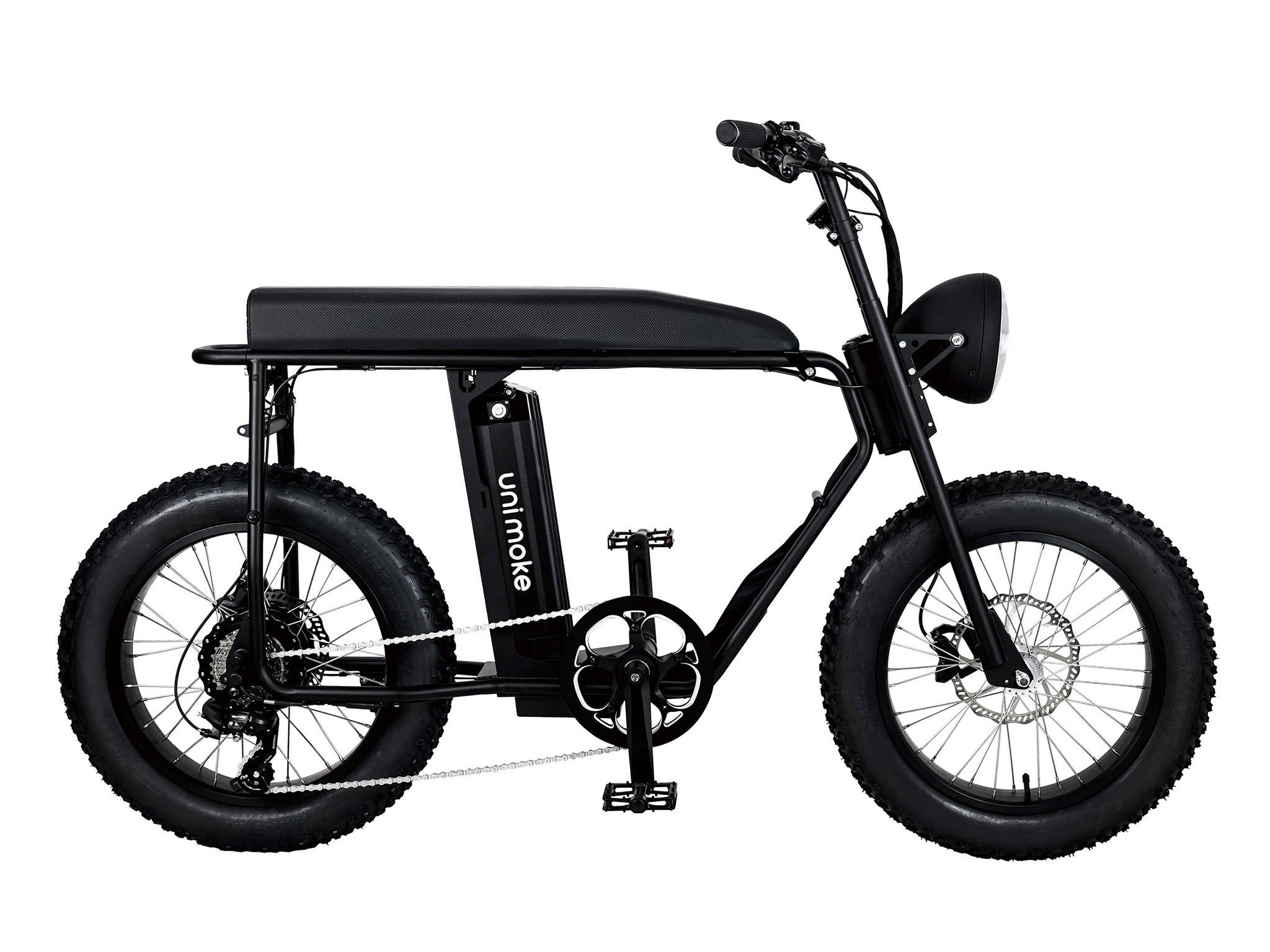 Urban Drivestyle(アーバンドライブスタイル)のファーストモデルであるUnimoke MK(ユニモークMK)は、ロングシートが特徴的なクラシックバイク型電動アシスト自転車です。一見バイクにしか見えないそのクールなデザインは、ブランドのプロトタイプとして絶大な人気を誇ります。