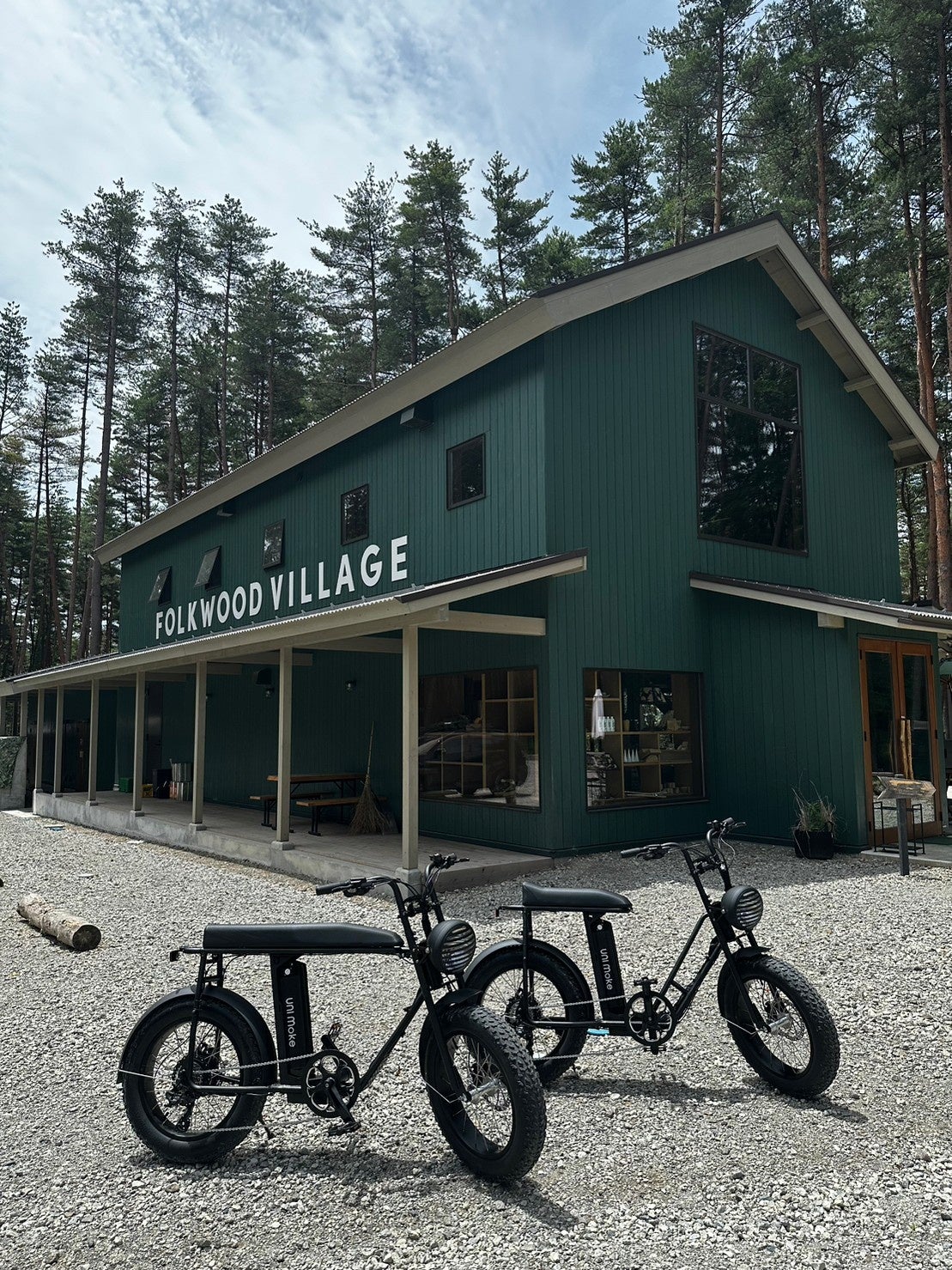 キャンプ場・カフェ・アウトドアサウナ・ショップ・プレイグラウンド・ワーケーションオフィスからなるアウトドア複合施設「FOLKWOOD VILLAGE 八ヶ岳」は、山梨県北杜市小淵沢町に位置し、八ヶ岳連峰と南アルプスの豊かな自然に囲まれた場所でありながら、都心から車で約2時間、小淵沢インターからも5分程度の近距離で近隣には道の駅や温泉施設などもありアウトドアレジャーやサイクリングには格好の立地となっておりますので滞在中、近隣施設への移動や散策にUNIMOKEでのレンタサイクルを楽しんでいただけます。