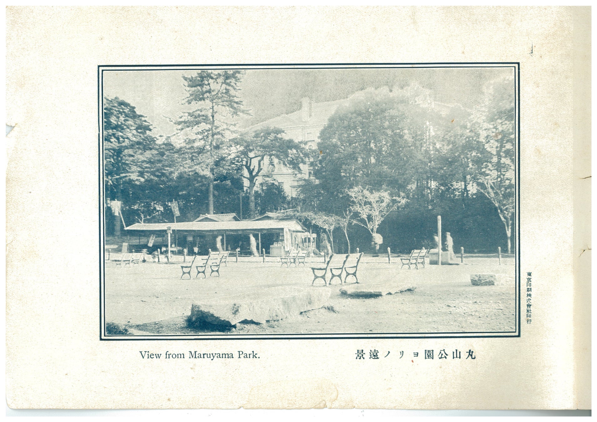 長楽館は明治42年に村井吉兵衛により、円山公園に隣接した祇園の土地に建てられました。京都出身の実業家 村井吉兵衛がこの洋館の竣工当時に残したアルバム帳(京都円山長楽館 : 村井別邸)には「丸山公園ヨリノ遠景」や「館内ヨリ丸山ヲ望ム」という円山公園を映した写真が残されており、別邸の地としてこの地が選ばれた理由には同公園の景観が大きく関わっていたことが読み取れます。