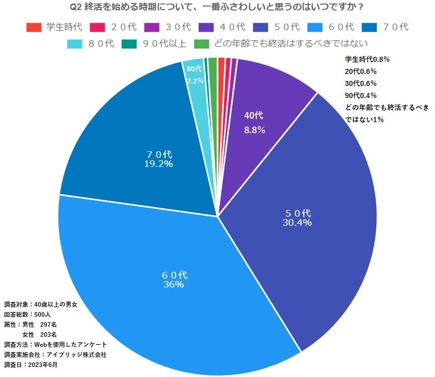 終活を始めるのに最もふさわしい年代を「60代」と答えた人が一番多い結果に!コロナ禍をきっかけ終活は若齢化、前向きに取り組む人が増加〜40歳以上の男女500人へ終活アンケートを行った結果〜