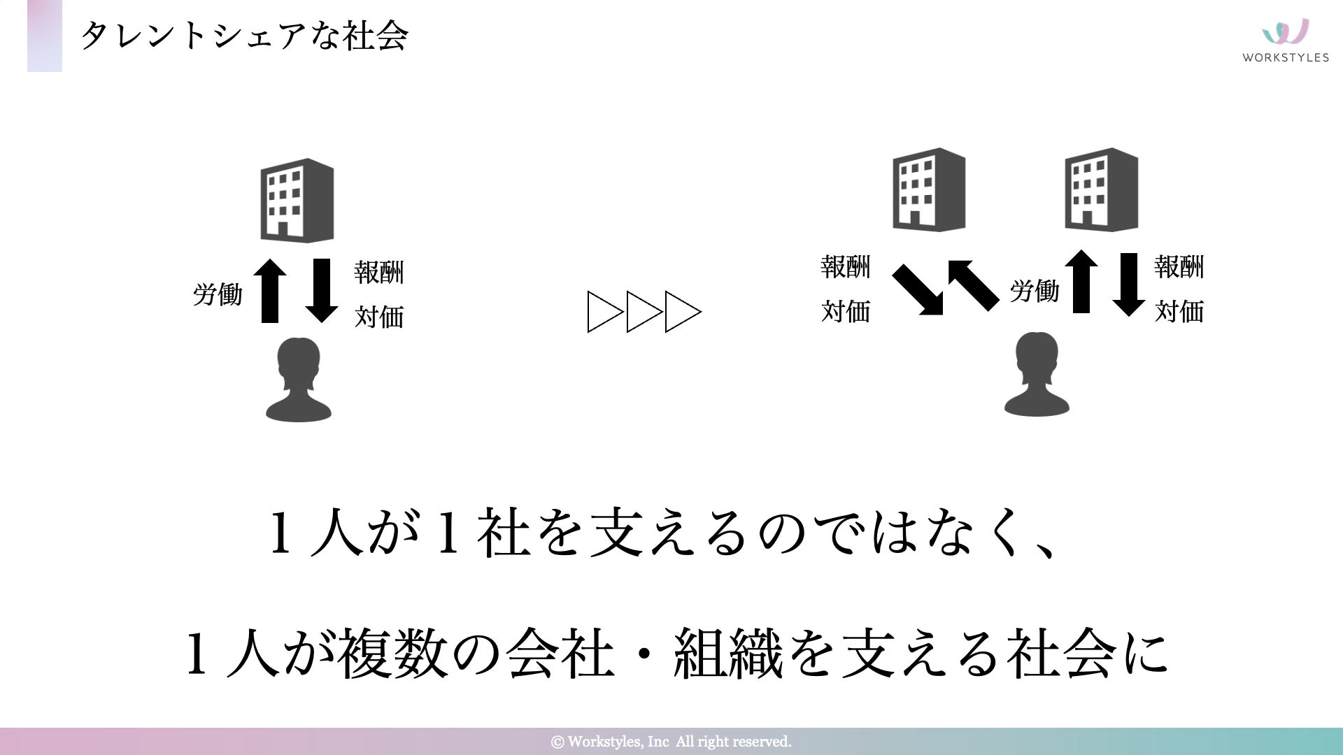 これは現代社会で働く一人一人の可能性を広げつつ、その才能や専門性を社会全体でシェアする「タレントシェア」な社会の実現に近づくということでもあります。
