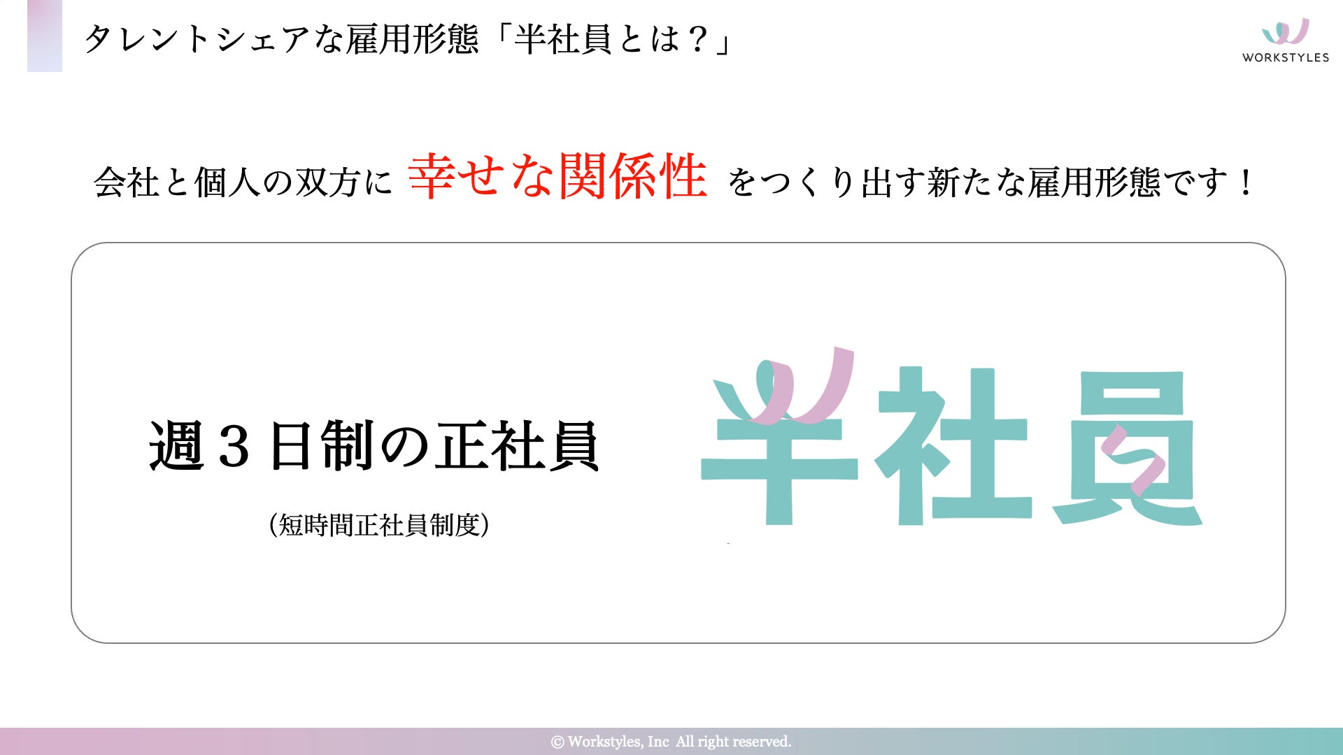 「週3勤務じゃダメですか?」 週3日制の社員制度【半社員】の導入支援サービスを開始しました ー ワークスタイルズ株式会社 ー