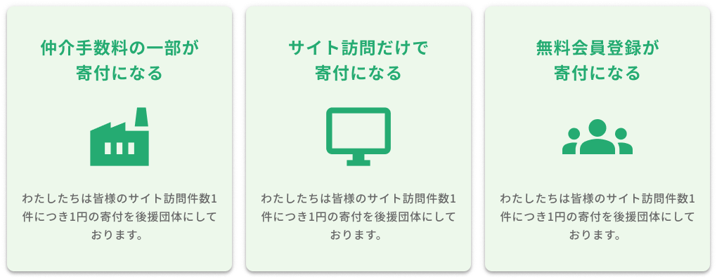 本サイトへ訪問するだけで10円/件が社会貢献団体へ寄付されます。