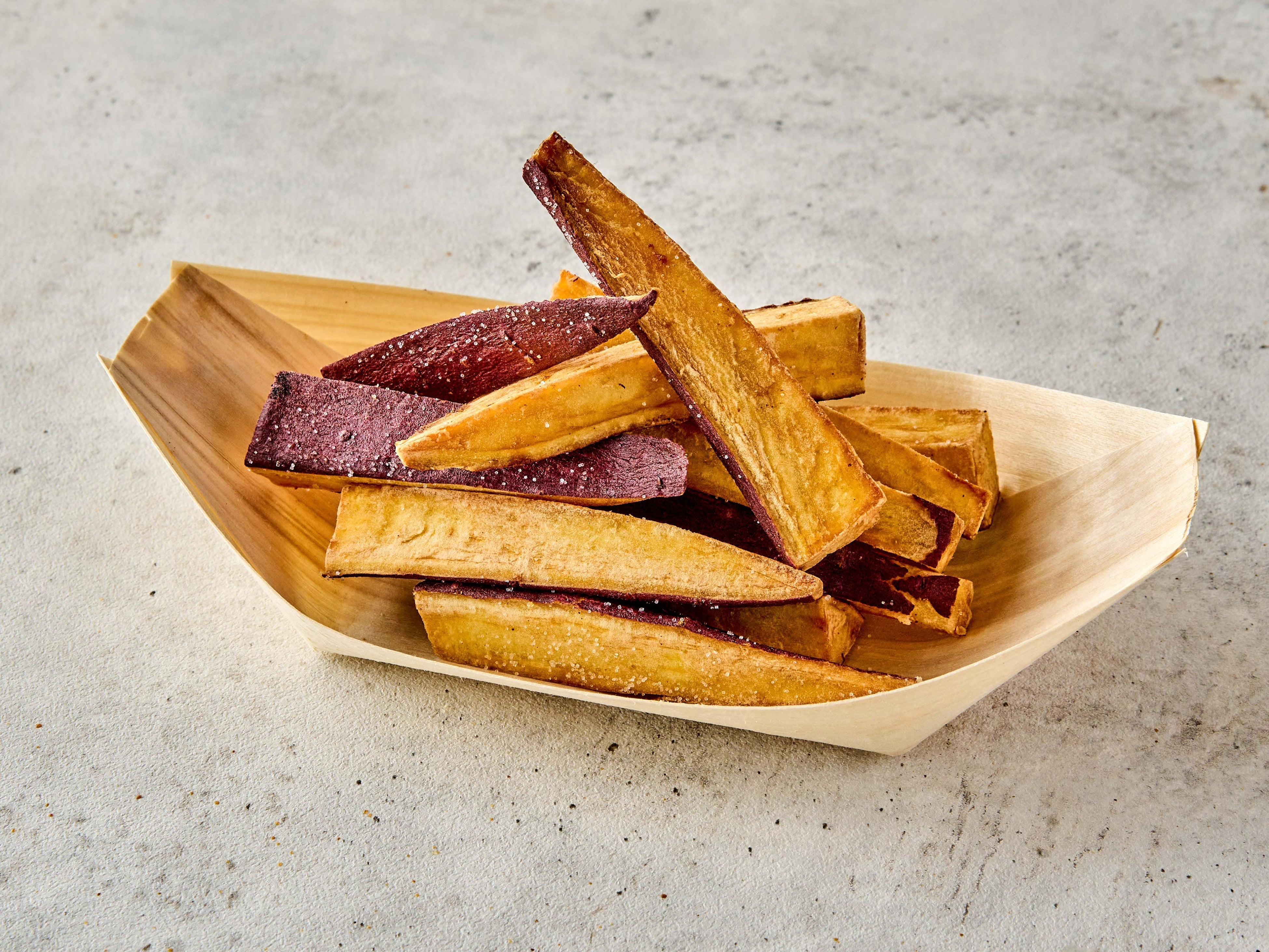 お食事系メニューとして新しく仲間入りのさつまいもぽてと。注文いただいてからオリーブオイルで揚げたてをご提供します!シンプルなお塩の味付けで引き立つ、糖度の高い紅はるかのお芋本来の甘味と、口の中でほろほろとお芋がほどける食感をお楽しみください。