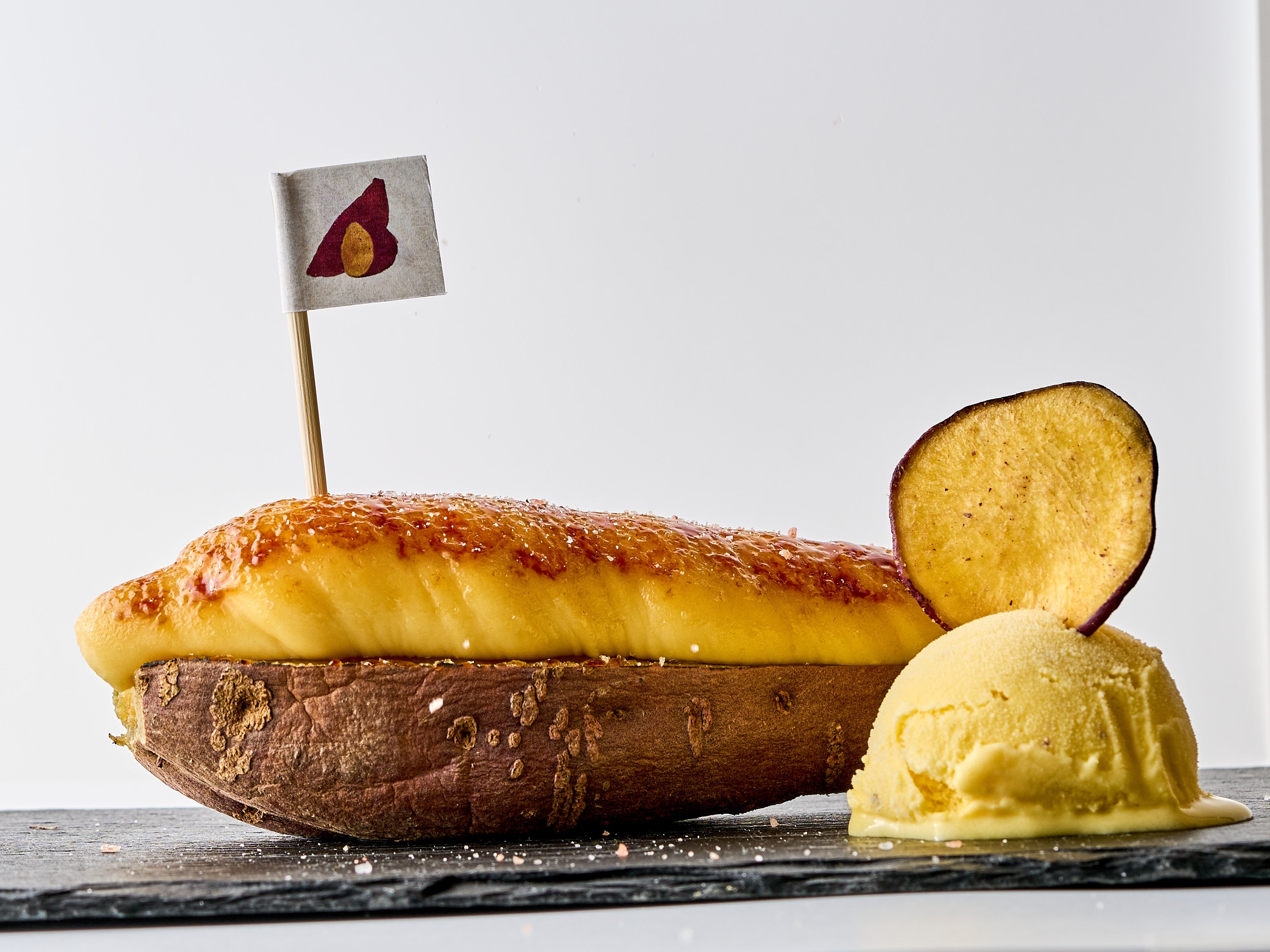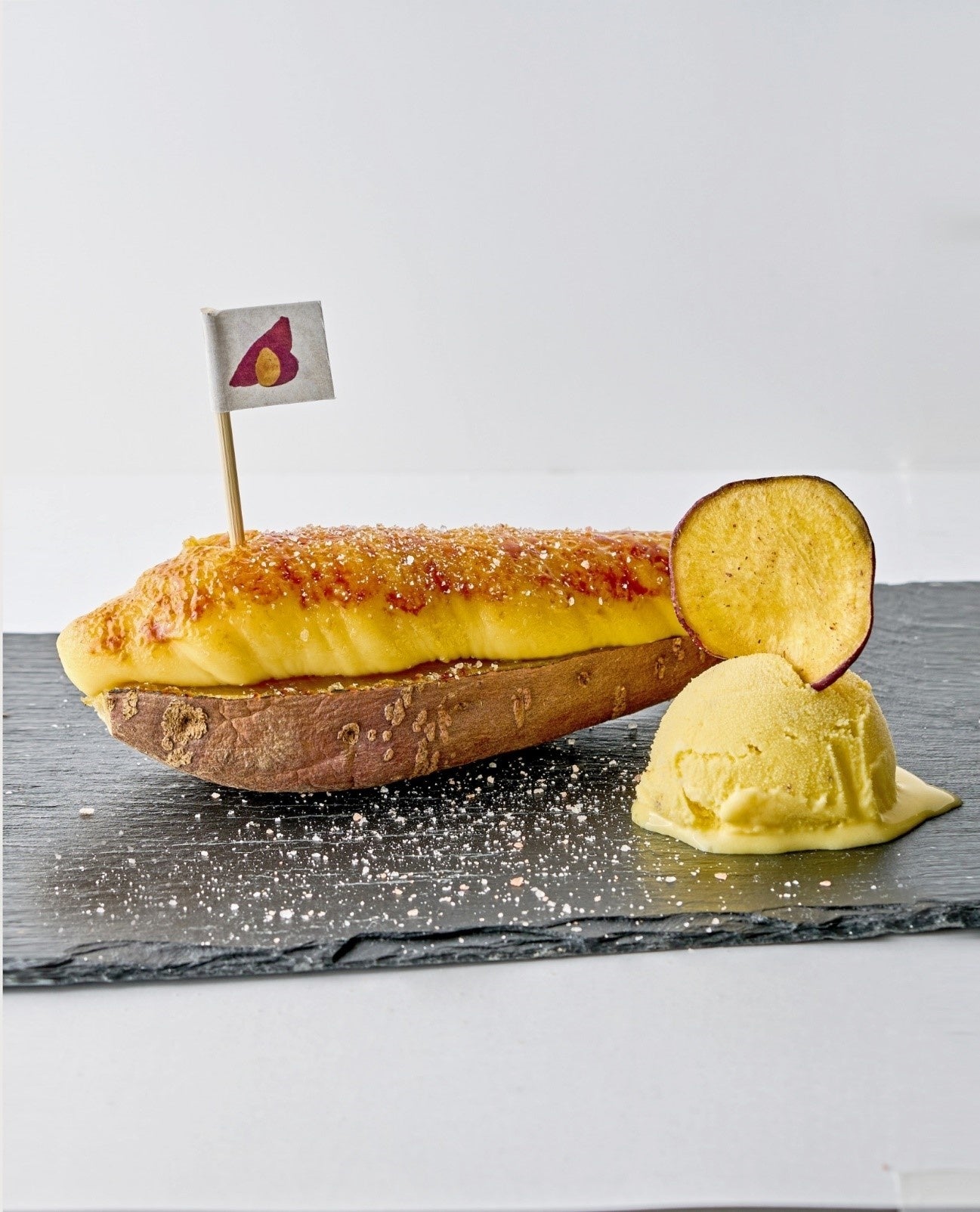 甘味と塩味のバランスが絶妙な、“をかしな”芋ブリュレです。