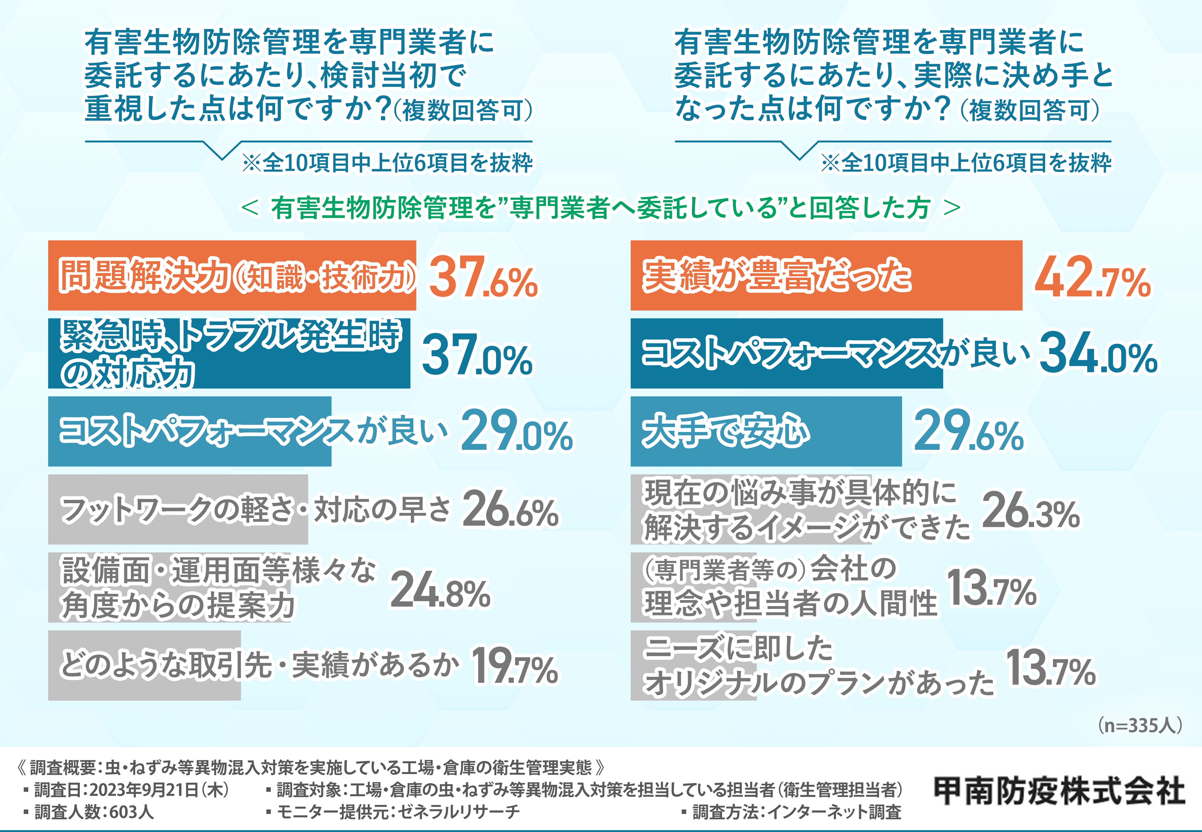 有害生物防除を専門業者に委託した際の重視した点と決め手