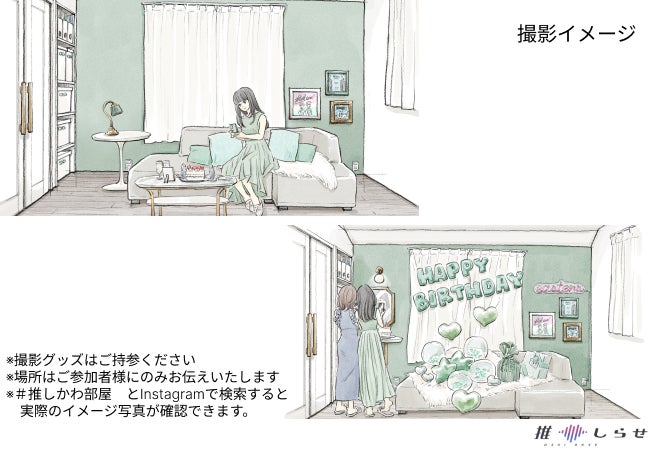 「推しかわ部屋」で、自分の推しグッズを展示しSNSの素材として使用できる写真の撮影会