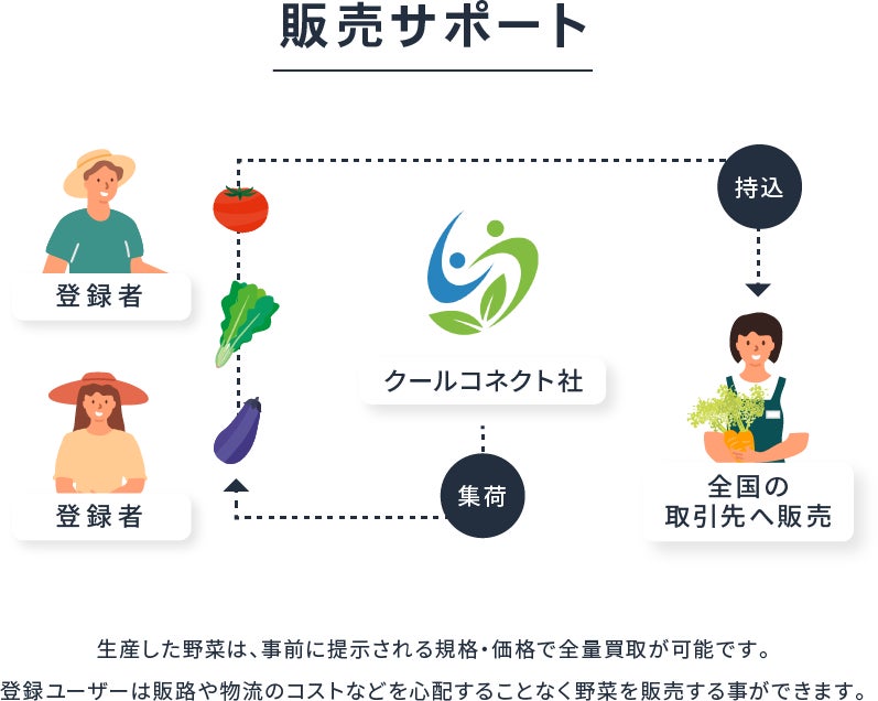 クールコネクトでは農業参入を目指す企業や個人を対象に、農業経営に必要な機能を提供することで、ワンストップでの農業参入を実現していきます。