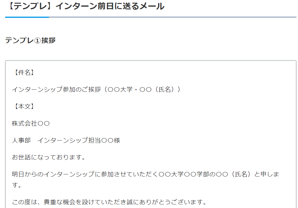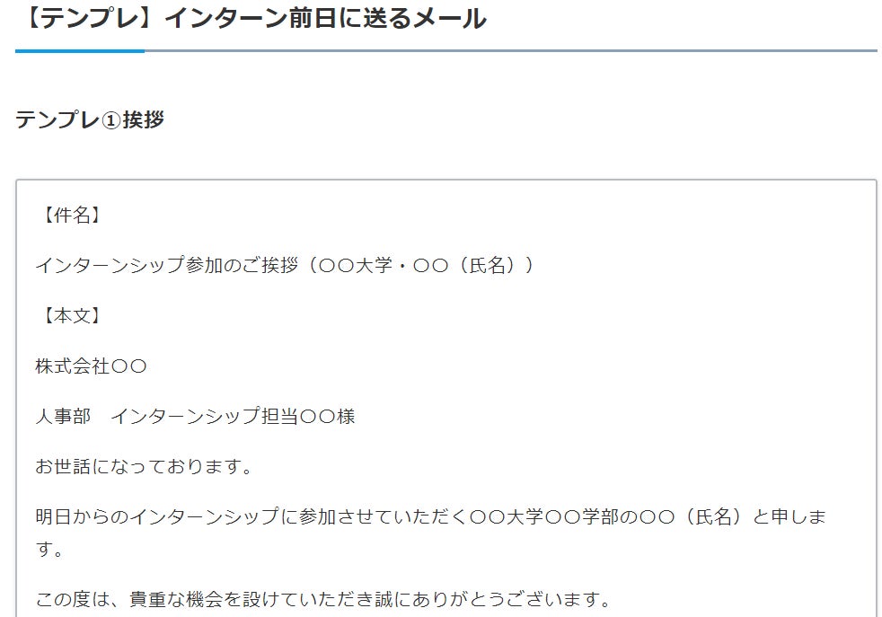 記事例1「テンプレ付き インターン前日に送るメールについて解説」