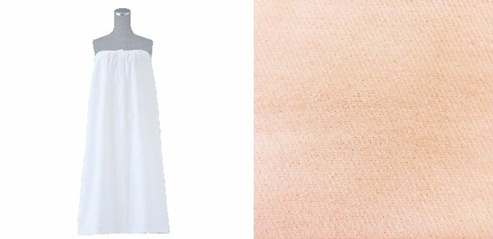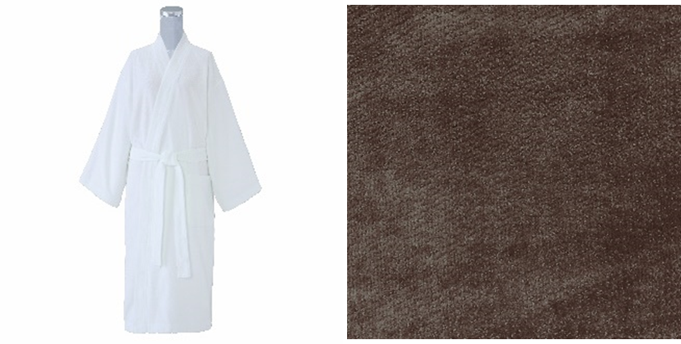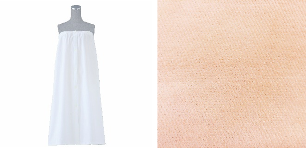 肩に負担のかからない薄手のタオル地を使用した軽い着心地。生地ボリュームをある程度残しながら、乾燥時間を短縮できるように、パイル部分の大部分をカットしています。