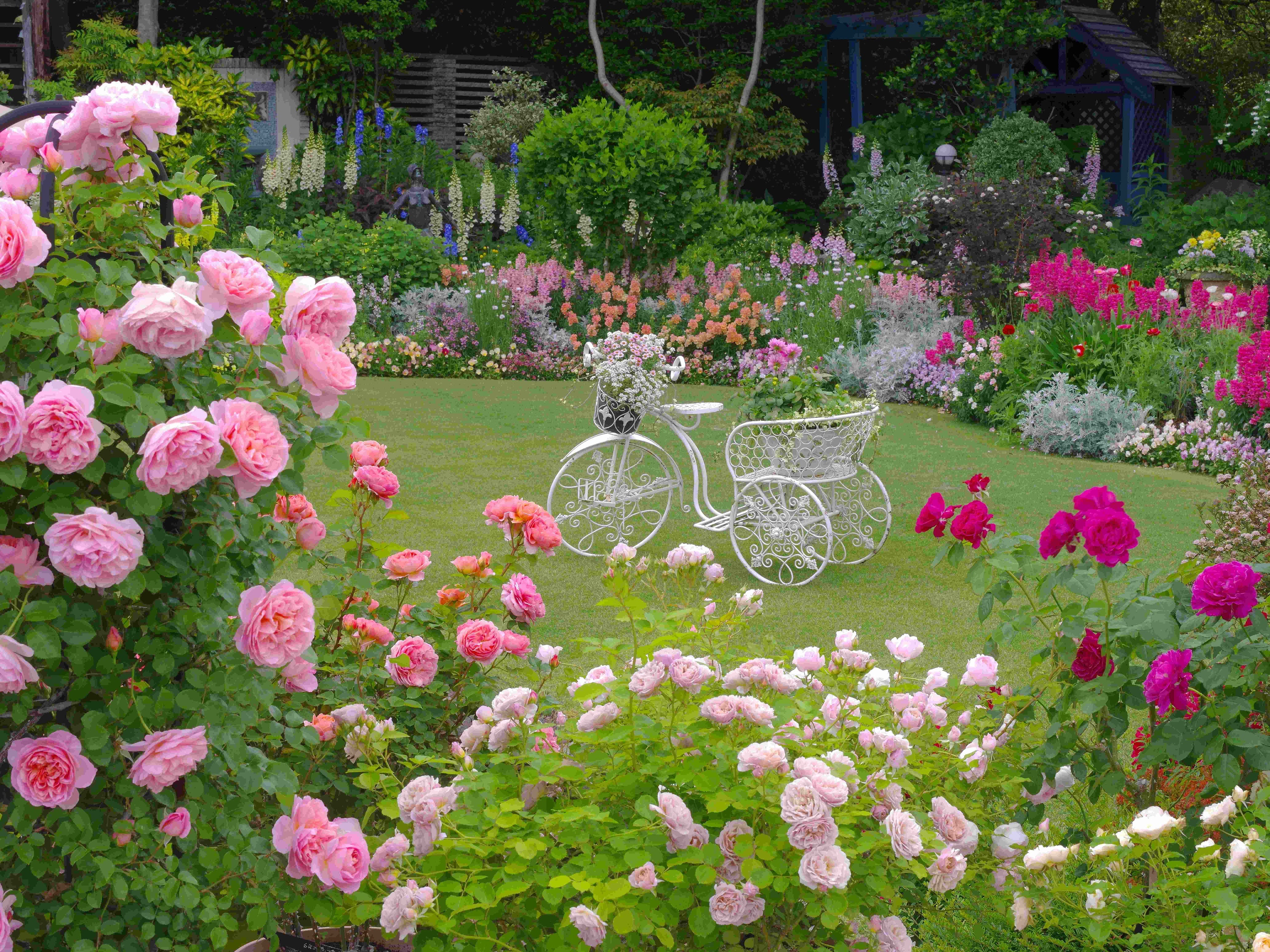 5月は、花遊庭でバラと草花の織り成す一番庭が輝くシーズン。イギリスにいるかのような美しい景色の中でゆったりと過ごせます。