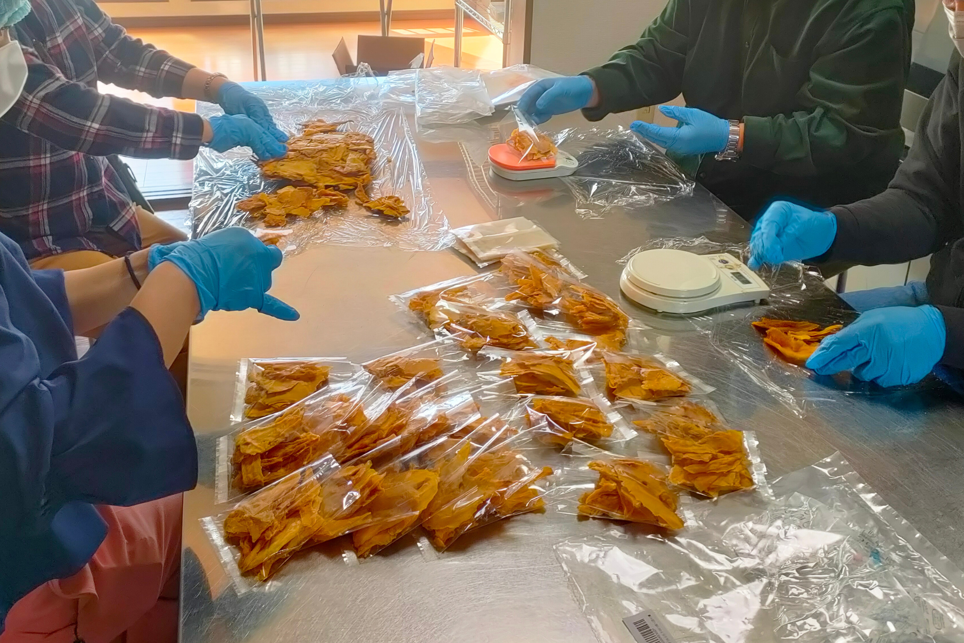 (保健所から許可を得た、衛生的な場所でパッケージへの袋詰めを行っています。)