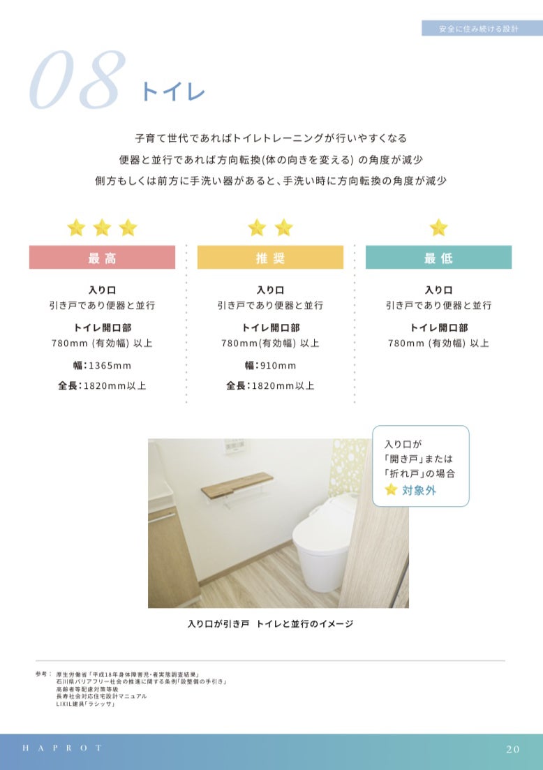 リハビリの専門家である作業療法士の立場で、小さい子どもにとっても、高齢者であっても安心・安全に暮らせる住宅をコンセプトに設計基準を作成。