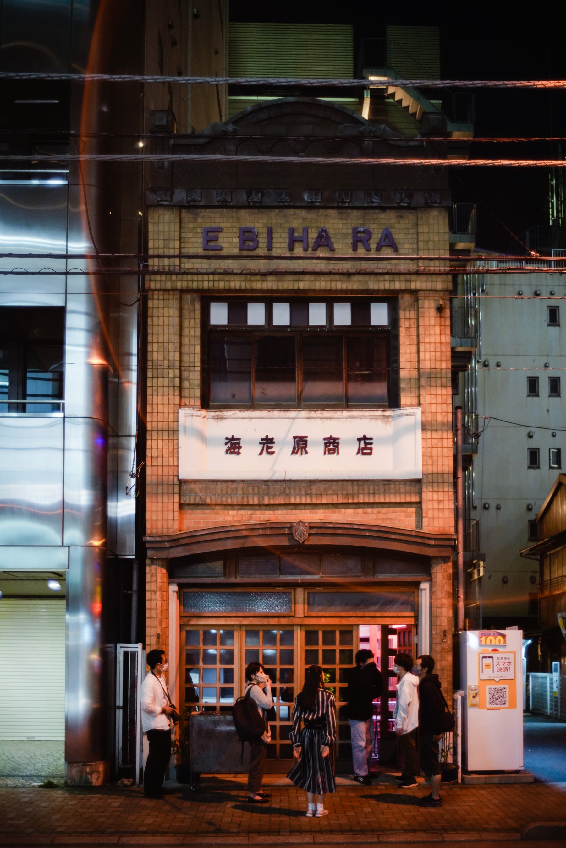 劇場となった海老原商店は、千代田区の景観重要建造物にも指定されている看板建築です。看板建築とは、 その多くは関東大震災後の復興期に乱立し、中小規模の資金力のない商店が鉄筋コンクリートのビルに見せかけるために、 その正面だけを銅板やモルタル、タイル、スレートなどの耐火素材で覆い、装飾した建造物のことです。そのため、海老原商店は、一見洋風レトロで趣のある歴史的建造物ではありますが、和洋折衷な出鱈目さもまた同時に感じる不思議な建物です。本物と偽物。和風と洋風、現代に残る大正時代の趣き・・・そのような、さまざまな二項対立が相即不離なものとして混在している海老原商店を劇場にすることで、より際立った現代表現の可能性を模索することができるのではないかと、この度の創作が始まりました。演劇もまた、偽物たちが本物と称して演じる出鱈目な表現なのです。さらに、神田という「古書」と「電気」が併存する特殊な文化的歴史のあるこの地は、歴史と現代を軽やかに往来する芸術表現の漂流地としてその存在を輝かせており、私たちが目指す表現の舞台として最適な場だと考えております。