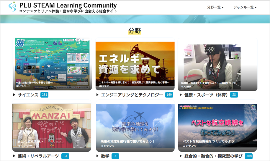登録コンテンツを学校現場で活用することはウェブシステムの目標です。PLIJが定期開催しているSTEAM人材育成研究会において、PLIJ STEAM Learning Communityの理解増進のため、第9回テーマを「STEAM教育の進化―PLIJウェブシステムの運用開始にあたってー」として、来る7月7日(金)15:00-17:00にオンライン開催予定であります。ウェブシステムの操作説明に加えて、掲載コンテンツを利用した教育現場でのSTEAM教育活用事例をご紹介いたします。