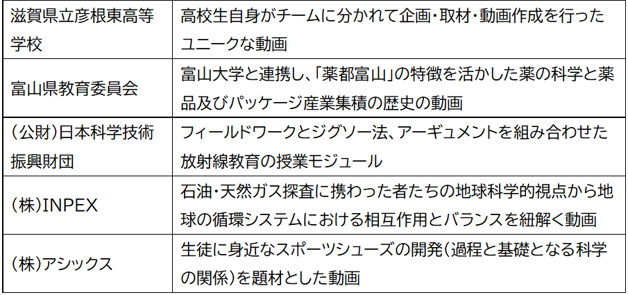 産業界、教育界、企業、国立研究開発法人などの識者のご意見をいただき、コンテンツの対象学齢、学びのポイント、指導の手引きなどを明示するようにして、学ぶ本人ばかりでなく、コンテンツの製作者や教員にも使いやすい内容とすることを心がけた。まずは広く利用されるよう努力したい。さらに現場からのフィードバックをいただき、コンテンツ製作者や現場の先生が工夫してさらによい教材を作れるような仕組みを構築していきたい。