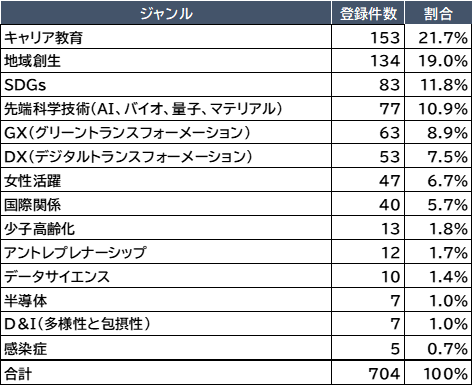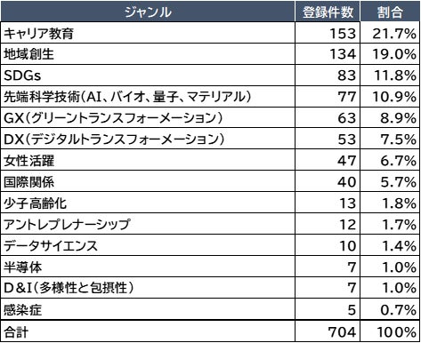 (注)ジャンルは任意設定かつ複数設定が可能なため、全登録数と各ジャンルの合計数は必ずしも一致しません