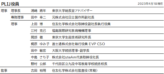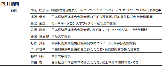産業競争力懇談会(COCN http://www.cocn.jp/)での1年にわたる検討(プロジェクトリーダー:東京大学藤井輝夫副学長(当時))を受け、2021年9月にSTEAM教育(※)の普及・発展をミッションに設立された一般社団法人。(HP https://plij.or.jp/)