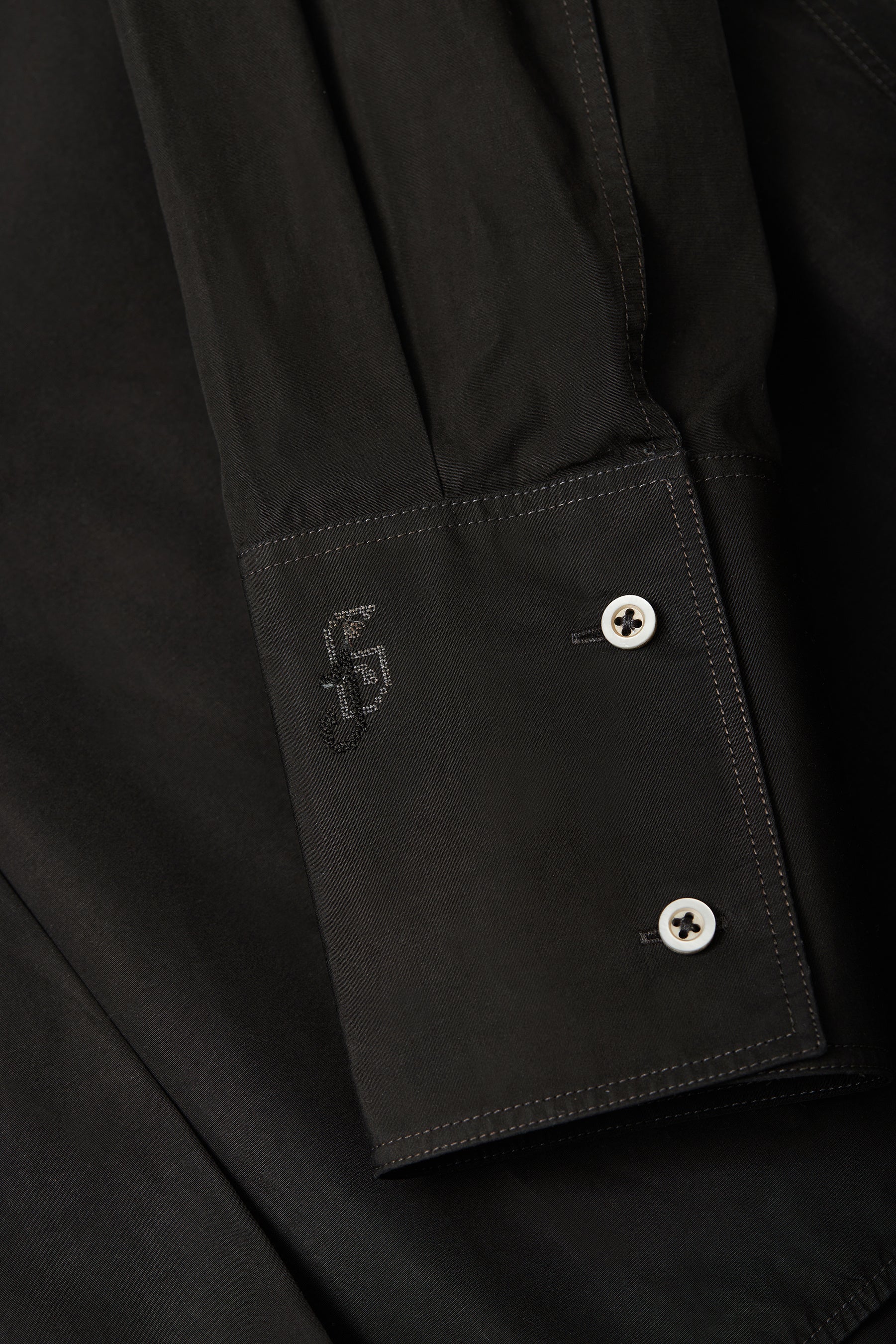 【京都店限定アイテム】京都紋付とコラボレーションした「7デイズ シャツ」ジル サンダーのアイコンでもある「7デイズ シャツ」を、京都で1915 年に創業した京都紋付が、良質な湧き水と深黒加工と呼ぶ独自の技術で黒く染め上げた。ジル サンダーの美学と、京都紋付の卓越したクラフツマンシップが融合した仕上がりとなっている。