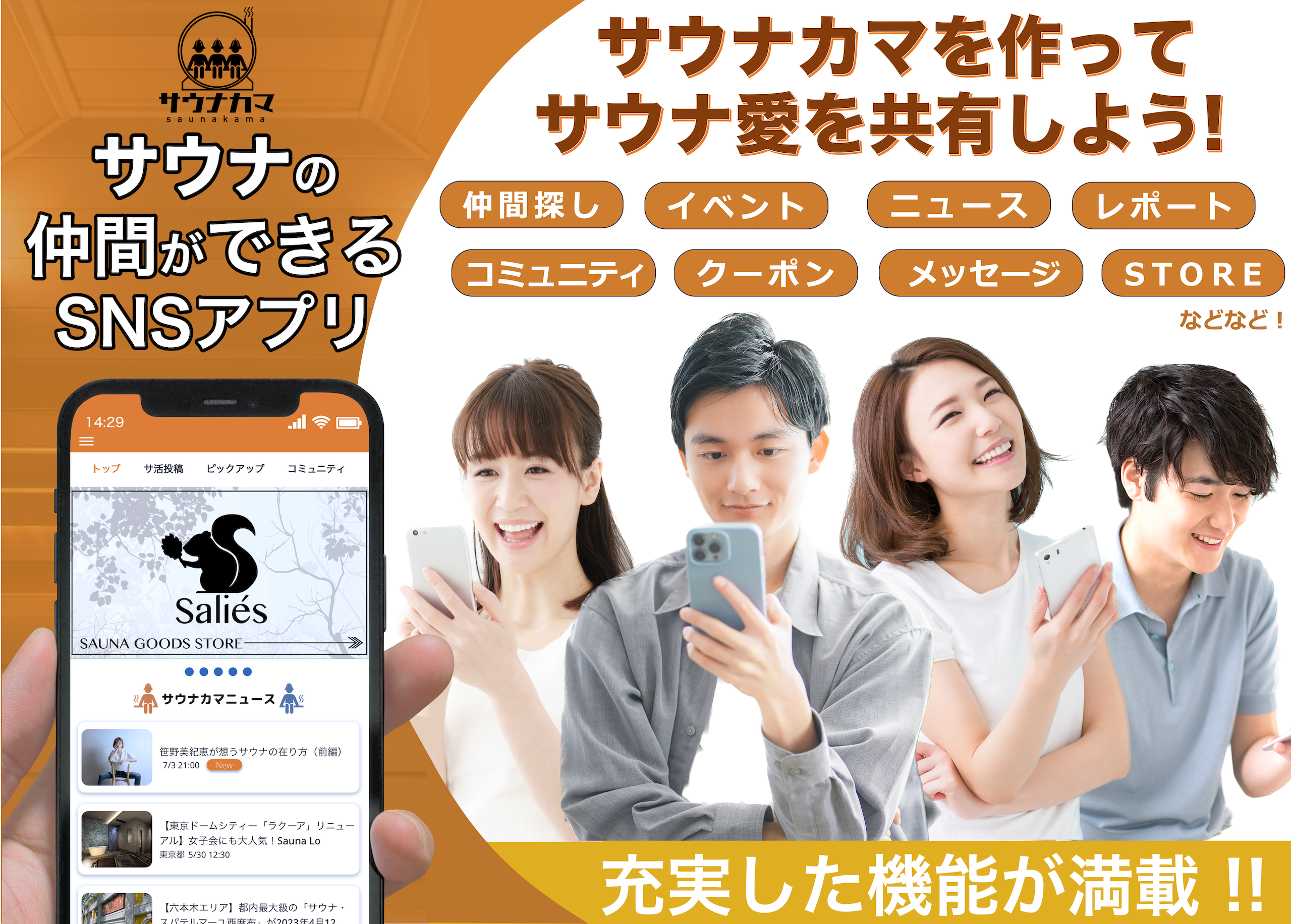 SNSメディア事業、サウナの仲間ができるアプリ「サウナカマ」のメインコンテンツでもある、アプリ
