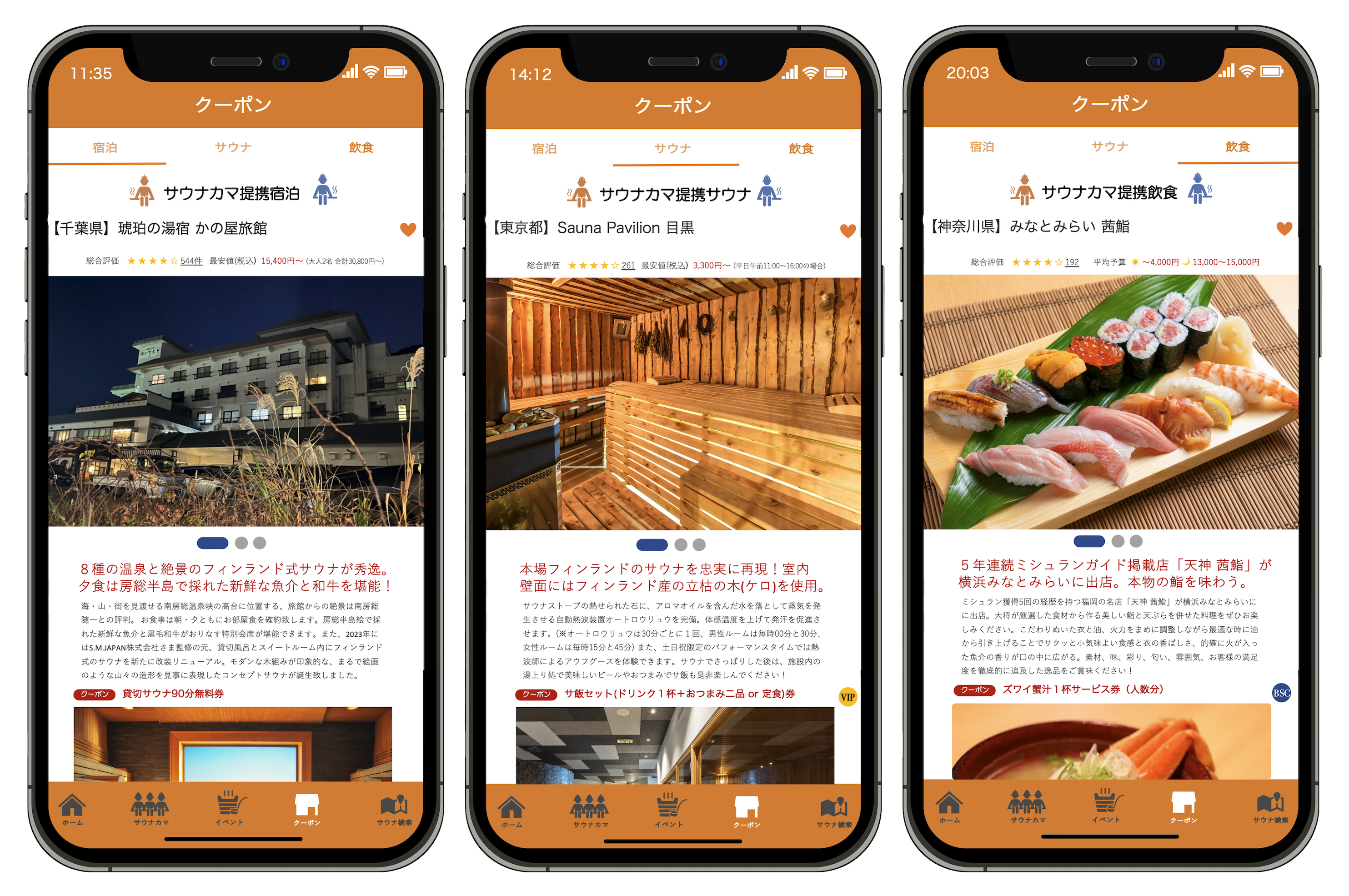 サウナの仲間ができるアプリ「サウナカマ」が、宿泊・サウナ施設、飲食店のクーポンを無料で掲載できる提携先パートナー事業者の募集を開始します。
