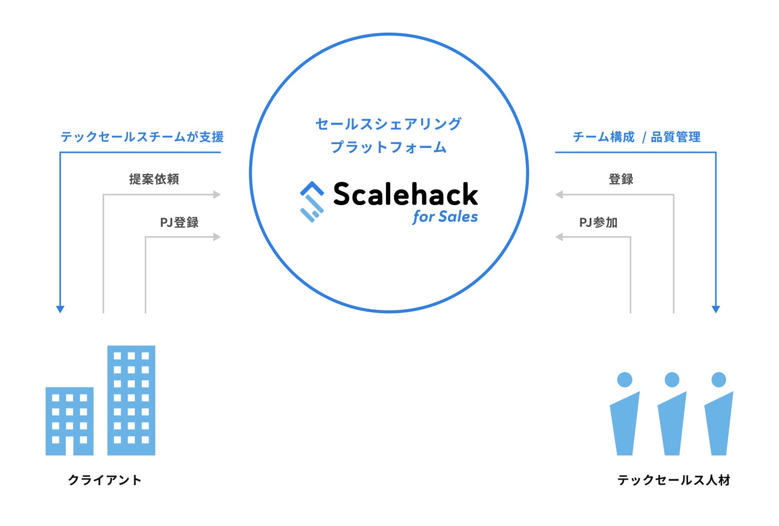 Scalehack、テック企業でデジタルプロダクトの営業経験を豊富に持つ人材DBから、プロジェクト単位で最適なチームを編成し伴走する「テックセールス特化型セールスシェアリングプラットフォーム」を開始
