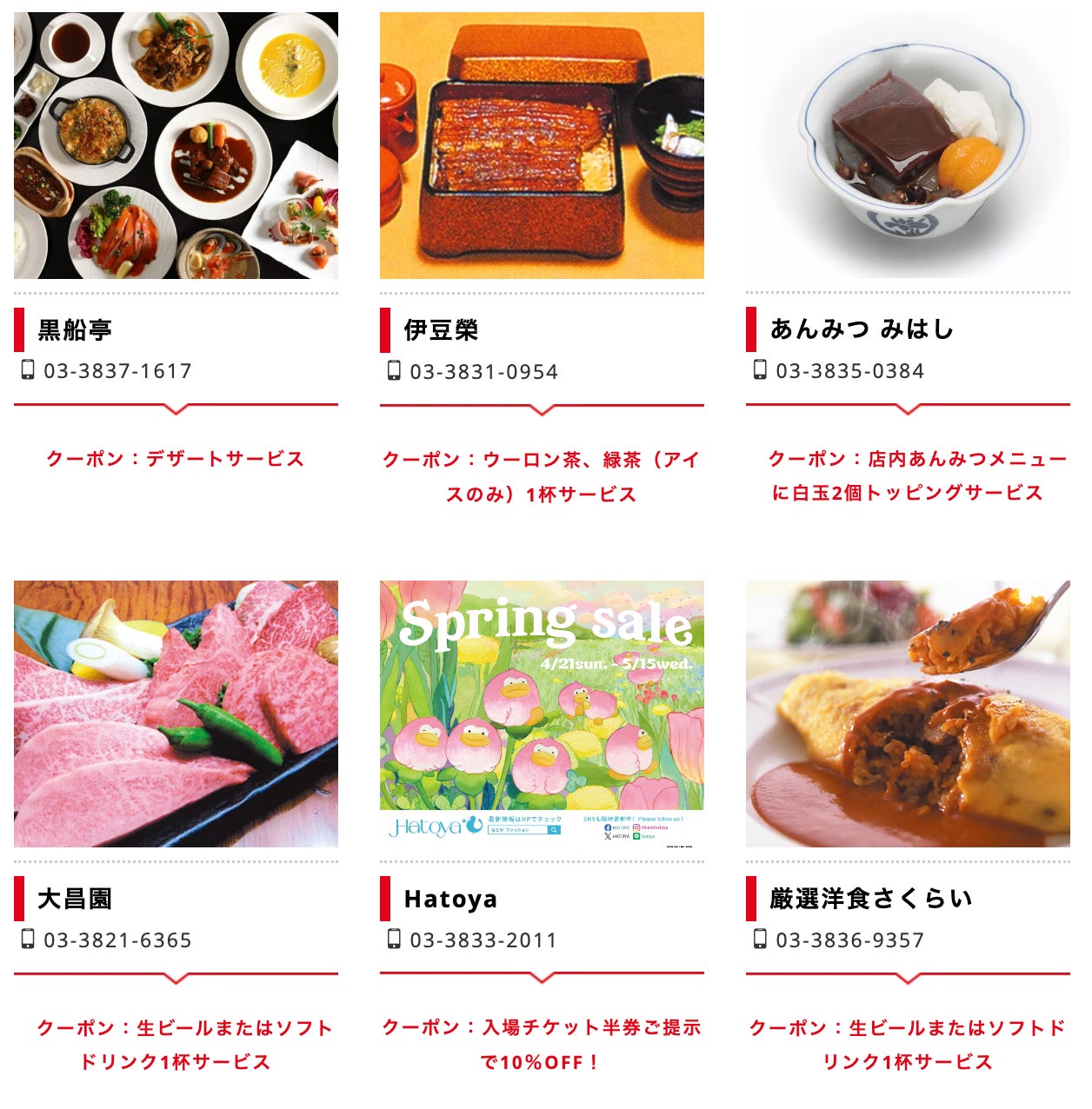 5月6日(土)~5月28日(日) の期間、下記店舗にて各館の半券をご提示いただくと無料サービスが受けられます。サービスの内容などの詳細は、上野ミュージアムウィーク公式サイトをご覧ください。