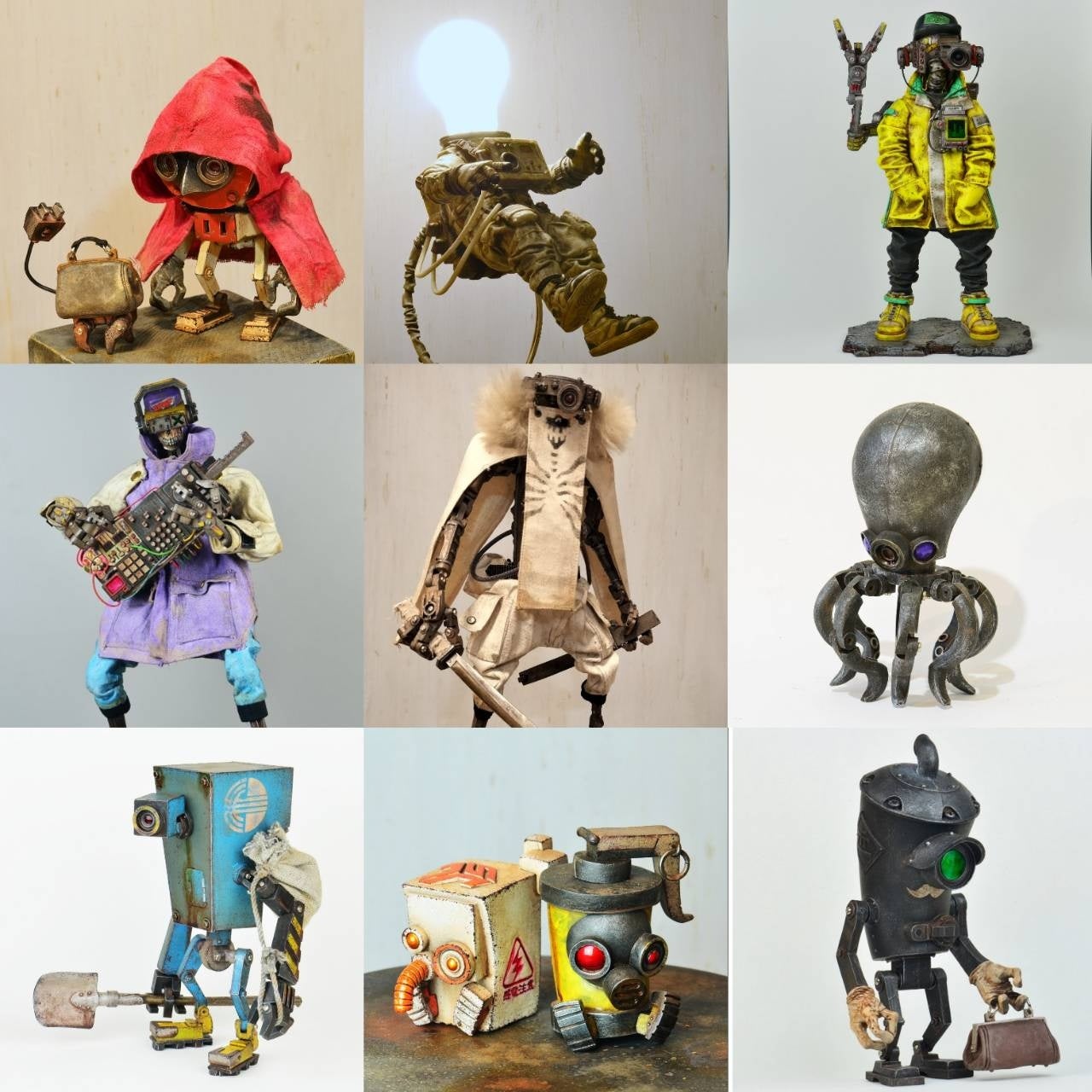 広島県福山市出身。メカと可愛いを融合させ、レトロフューチャーな世界観を創造しております。朽ちた世界で人間を模して生活し続ける錆びたロボたちのストーリーです。作家として10年を迎えました。色々なイベントに出展し、藝育会でも作品を出展させていただいております。
