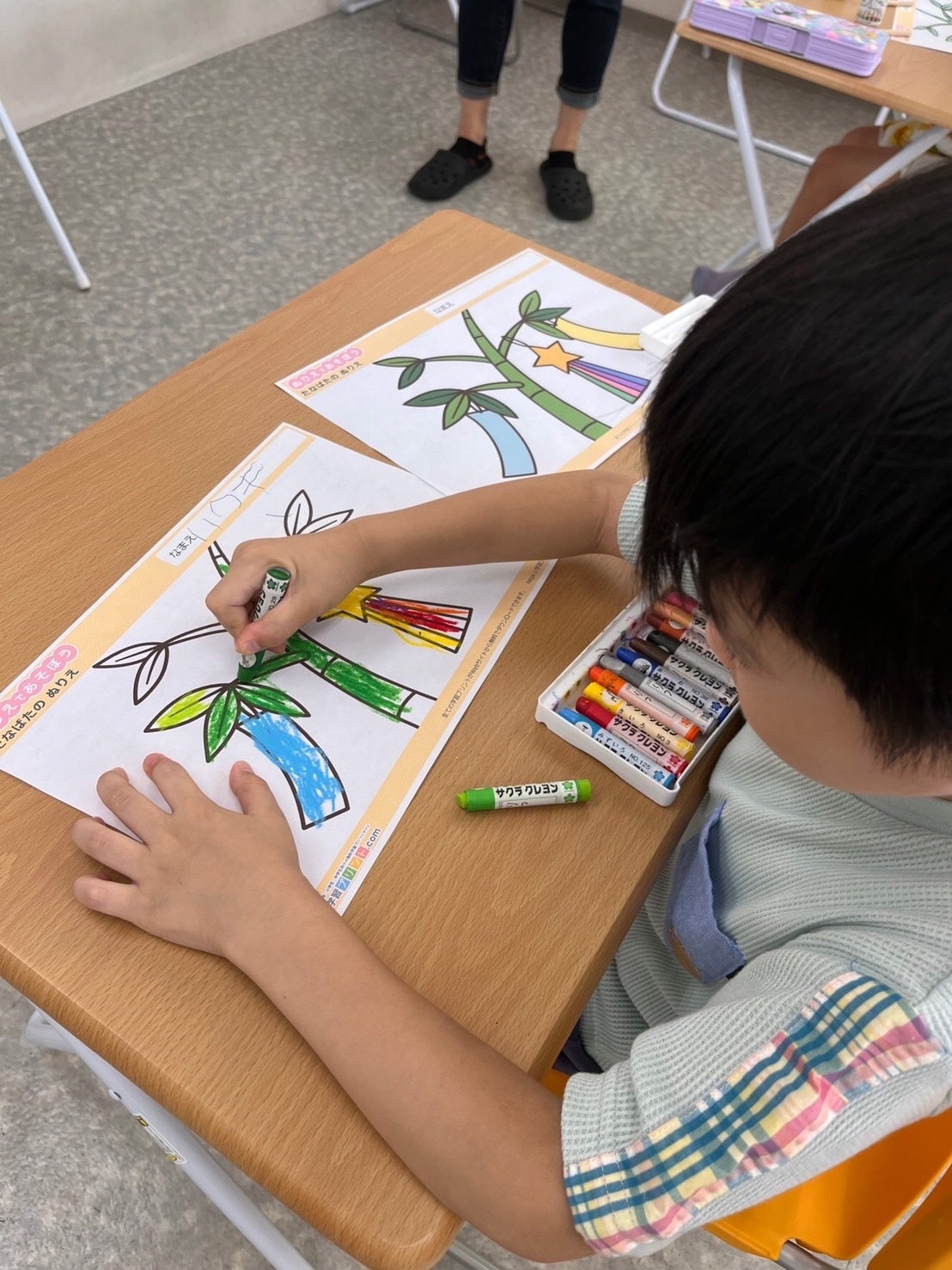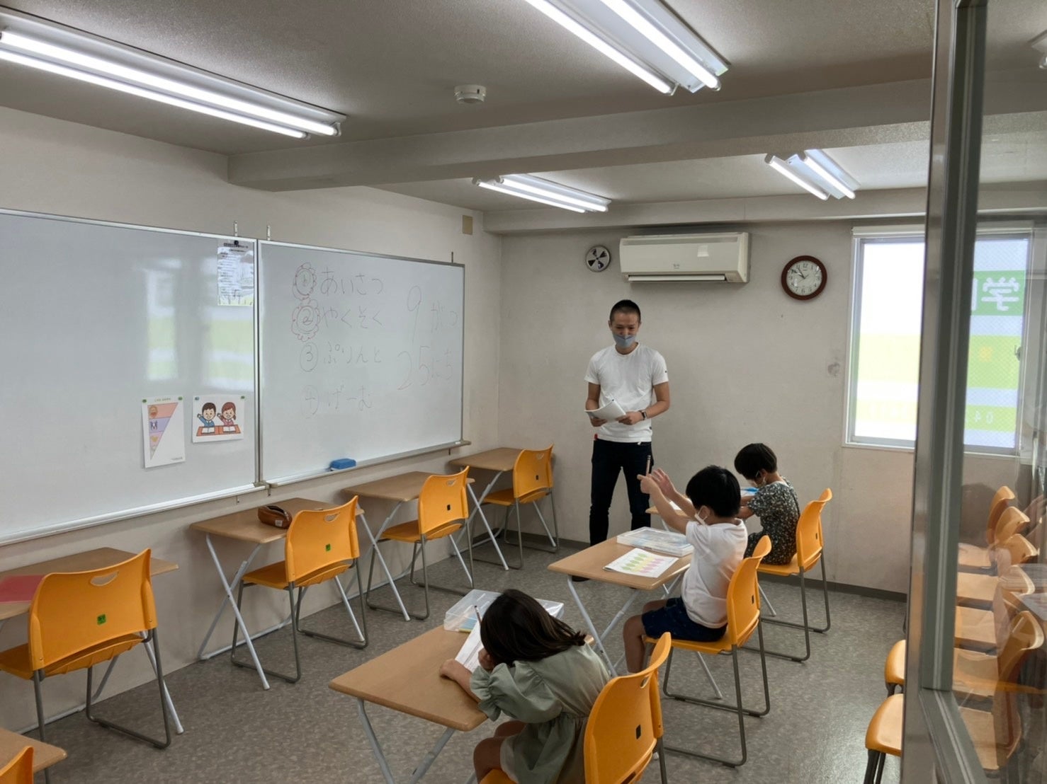 1回の授業は約60分です。前半は「お話」「日付の確認」「教室ルールの確認」などを行い、前半は「微細運動」(運筆・はさみ・のり・そのほか文房具など)を行い、後半は身体を動かした「粗大運動」(ゲームなど)を行う。発達に特性があるお子様でも飽きずに取り組めるように工夫されている。