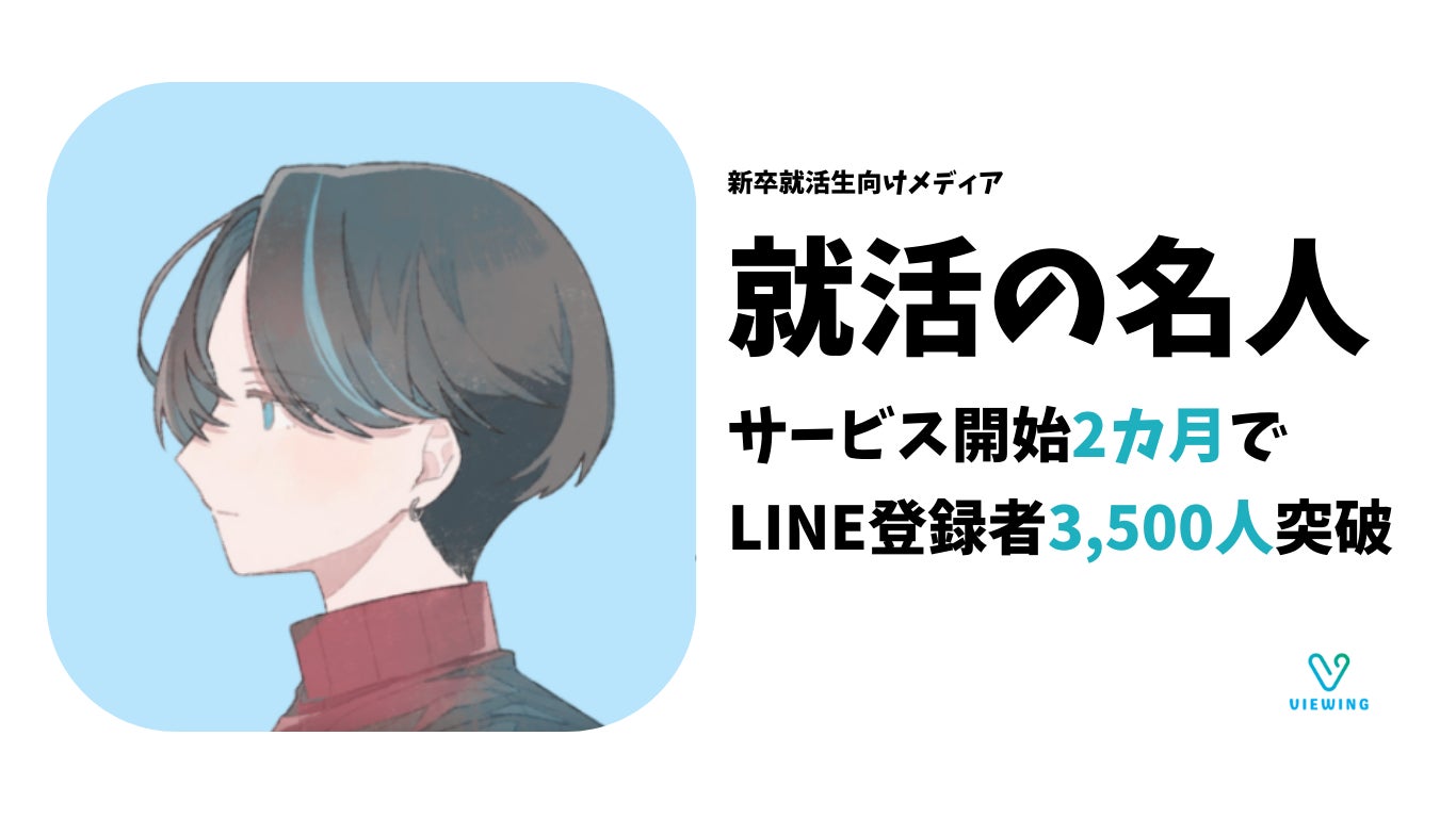 2024年7月4日 - 株式会社ビューイング(東京都中央区、代表取締役社長:菊池英夫)は、同社が運営する新卒就活生向けメディア「就活の名人」が展開する就活支援サービス利用者数が3,500人を超えたことをお知らせします。サービス開始から2カ月と、非常に短期間で多くの新卒就活生にご利用いただきました。