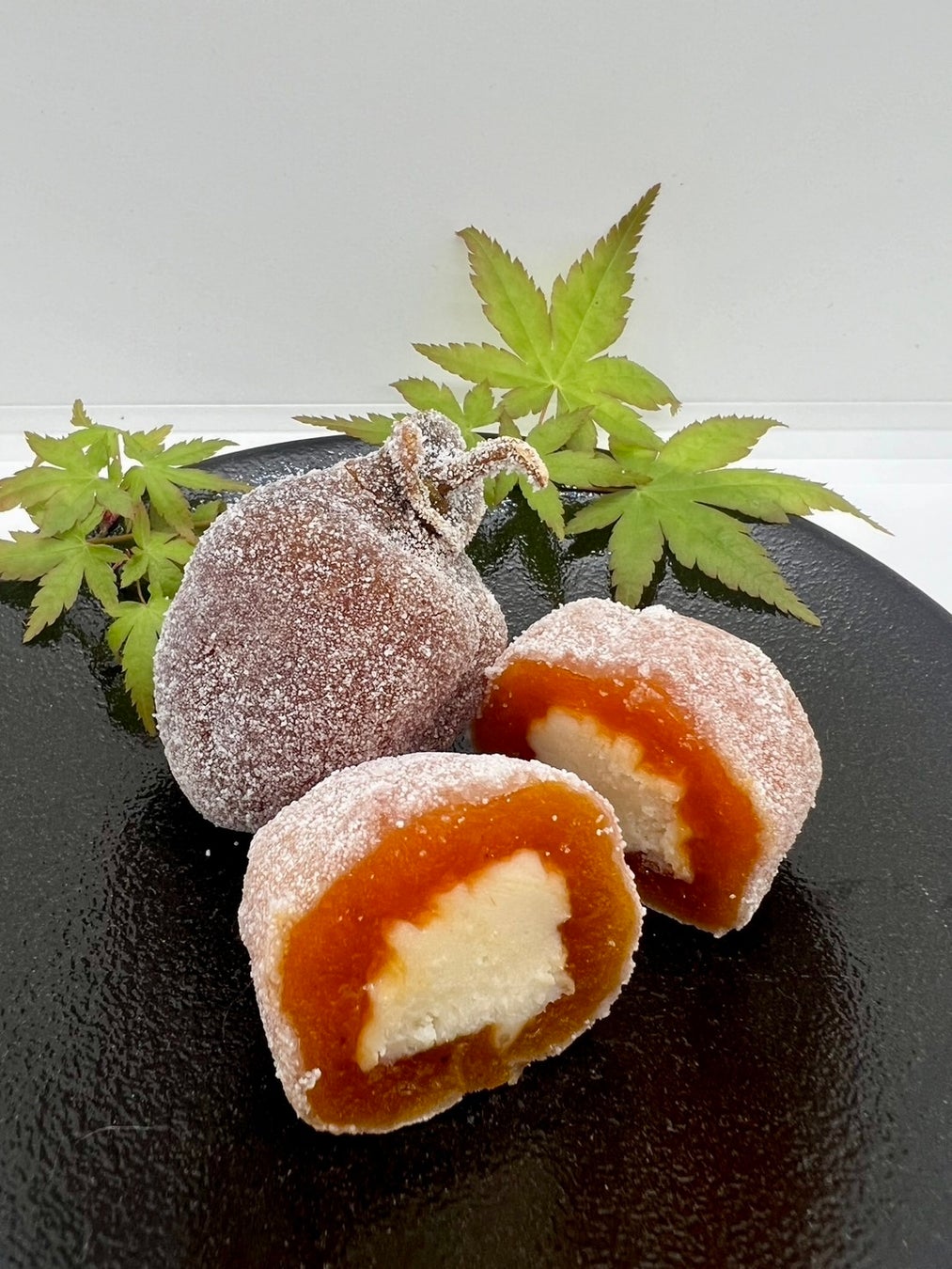 長野県産市田柿に、なめらかなクリームチーズとやさしい甘さの白餡を包んだ、和と洋の絶妙なマリアージュをご堪能いただけます。今後は季節ごとに市田柿を使用した新作を順次販売開始予定。