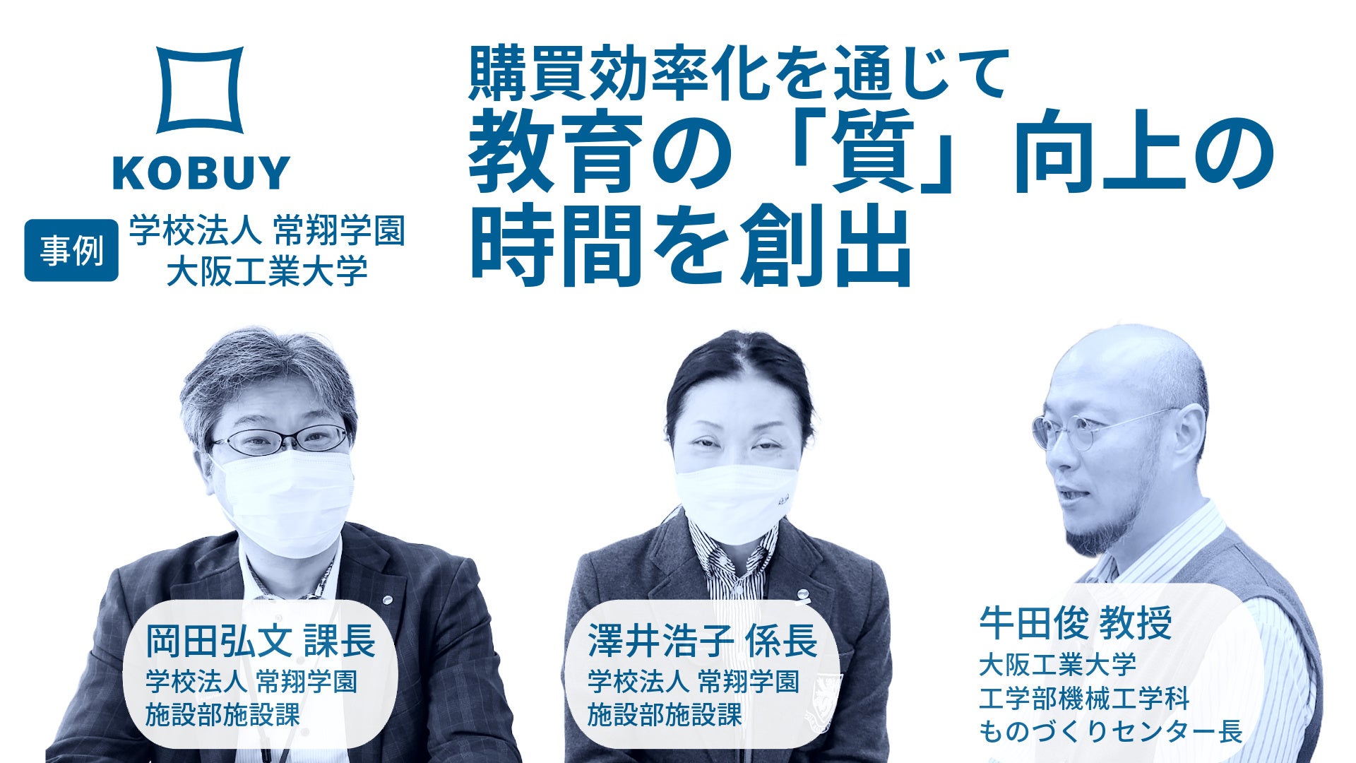 常翔学園の施設部施設課 課長 岡田氏は、「KOBUYの導入により、購買業務の運営が向上し、教育・研究により多くのリソースを注げるようになりました。」とコメントしています。